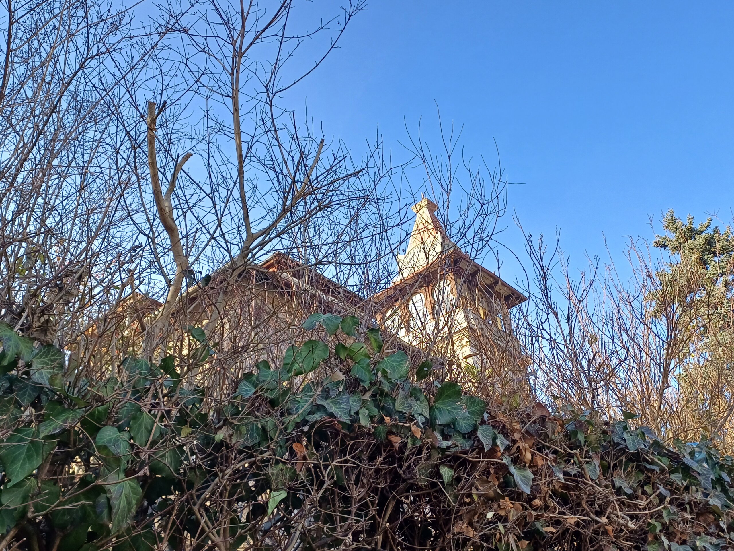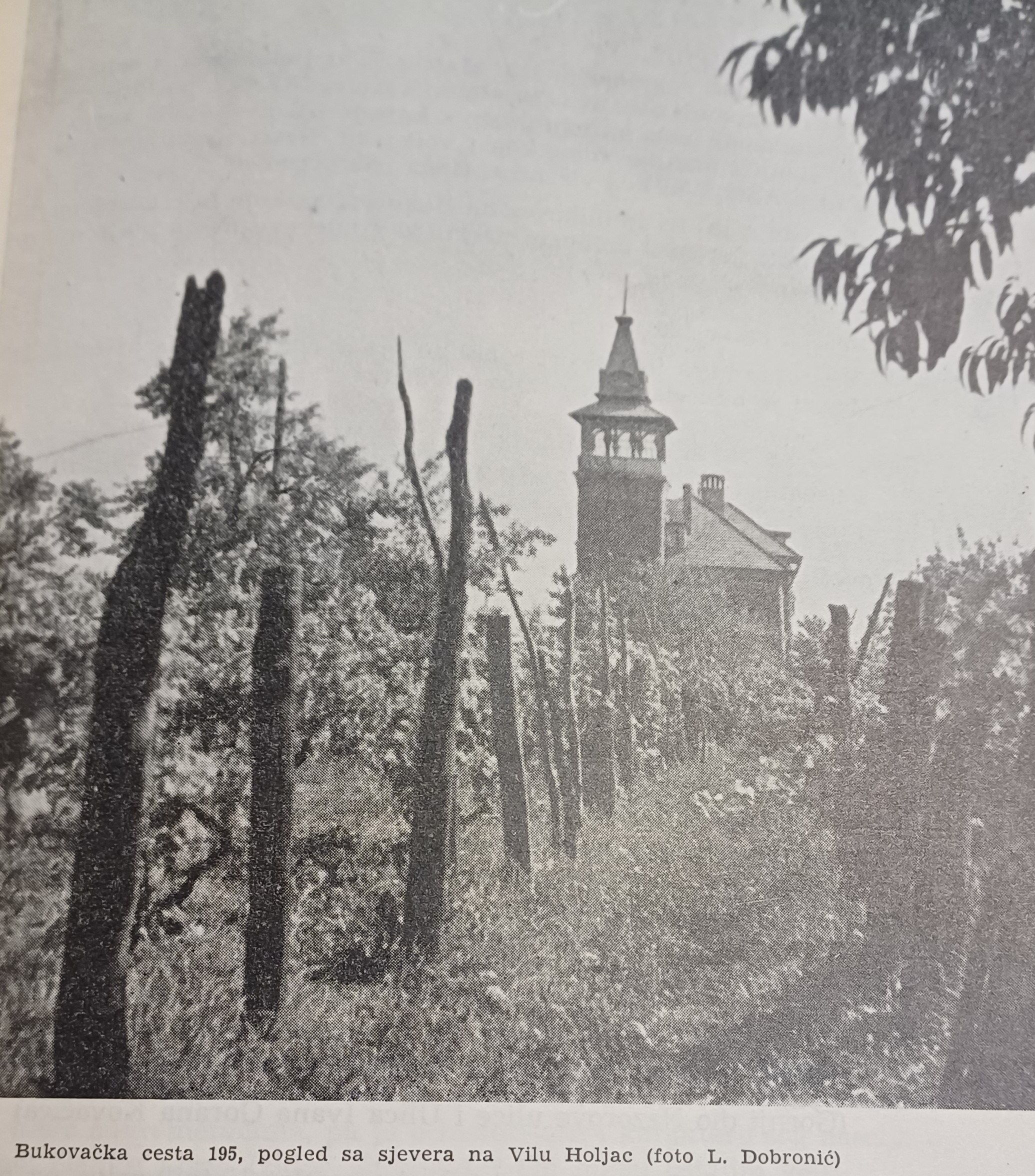 Pronašli smo da Dobronić u svom djelu spominje baš taj ljetnikovac, na Bukovačkoj cesti 195. Od ceste ga dijeli obrasla ograda, no fotografija iz starijeg doba u njenom djelu prikazuje ga s druge strane – karakteristično – kroz redove vinove loze odakle izgleda kao kuća iz gotičke bajke. Dobronić ga opisuje kao jednokatni ljetnikovac velikih dimenzija kojim sa sjeverne strane dominira toranj, koji si je za toplije dane podigao arhitekt Janko Holjac.