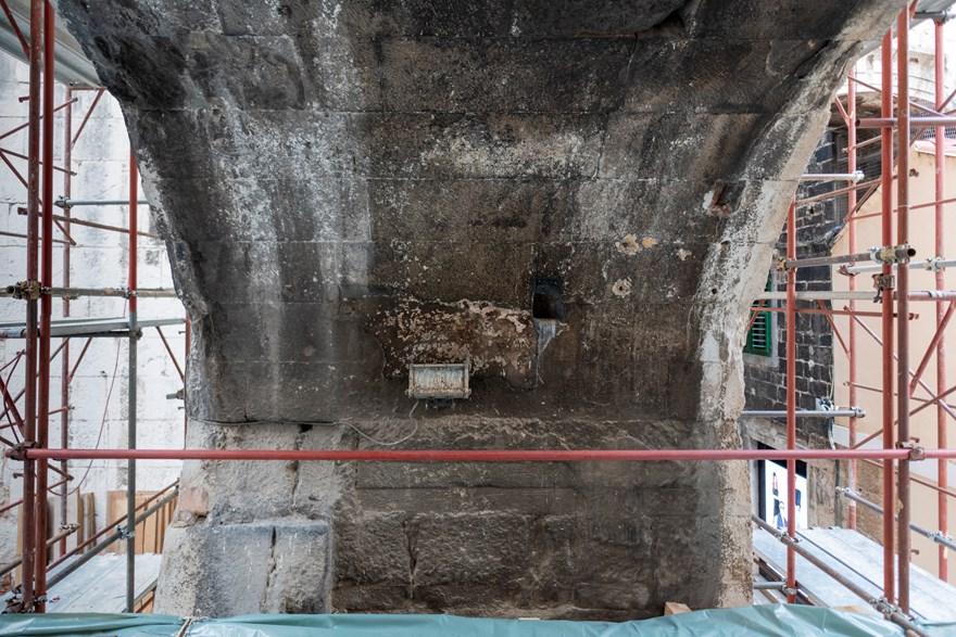 Pogled na istočni zid propugnakula i istočnu fasadu Crkve Gospe od Zvonika | foto: Grad Split