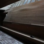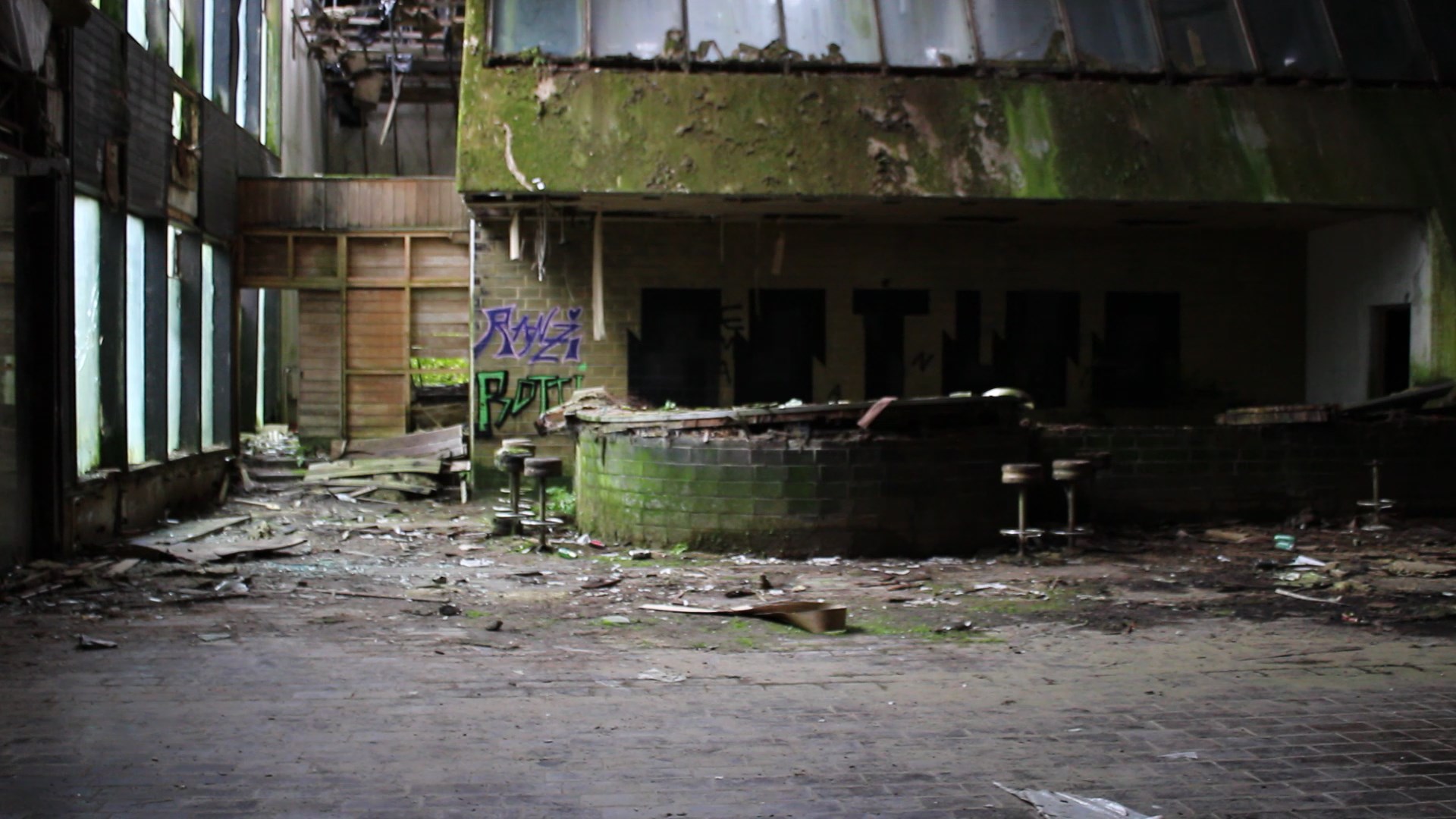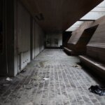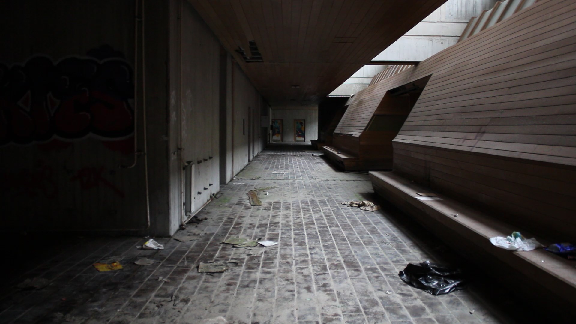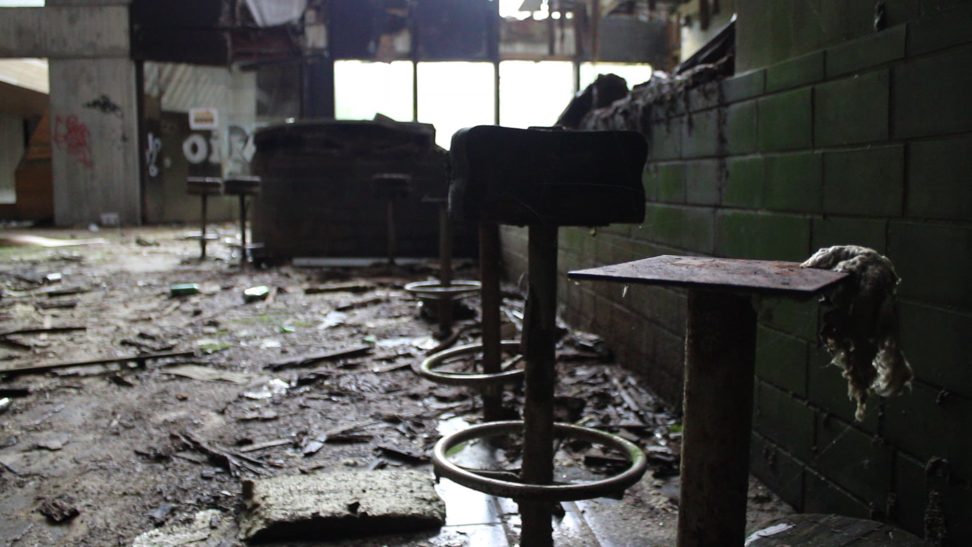 Pokraj šanka proteže se betonsko stepenište s velikim drvenim rukohvatima koje vodi na više katove. Zgrada ima sveukupno 3 kata i svi prolaze cijelom dužinom zgrade. Jedino je treći „odrezan“ do pola i proteže se samo polovicom zgrade. Dugački hodnici ukrašeni su glomaznim betonskim cvjetnjacima u kojima danas više ne raste ništa.