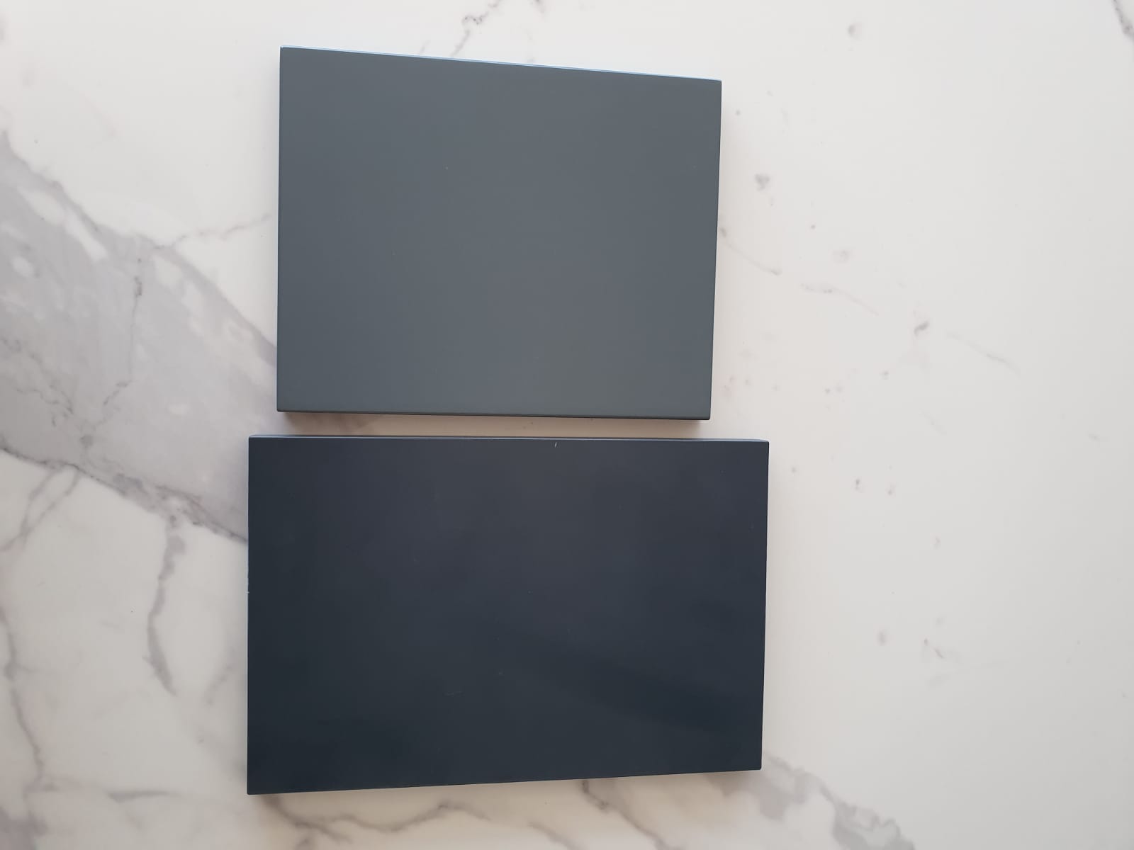 Osim prednosti i mana samih materijala, veliku ulogu ima sjaj ili mat verzija materijala. Dakako ovo se sve radi na frontama elemenata i namještaja jer se korpus (kutija) elemenata gotovo uvijek radi od iverala jer je jeftiniji.