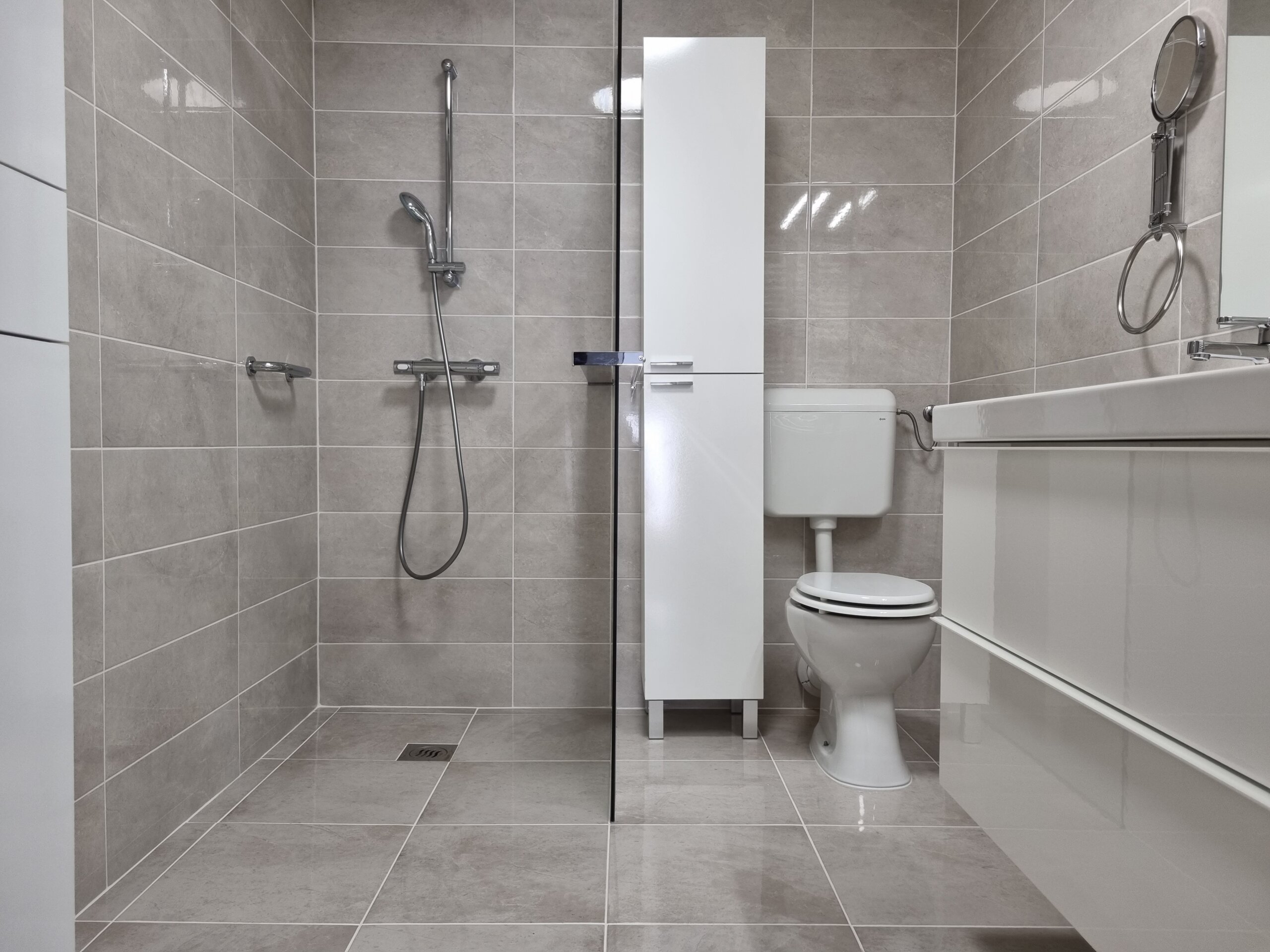 Neizbježan element u kupaonici je već spomenuto zrcalo koje nudi tri funkcije, prostor za pohranu, rasvjetu i funkciju samog zrcala. Zadovoljavajući dizajn kupaonice podrazumijeva pristup svim područjima unutar prostorije bez nailaženja na bilo kakve prepreke. Tuš kojem je površina u ravnini s podom izgleda moderno, a istovremeno se maksimalno koristi prostor.