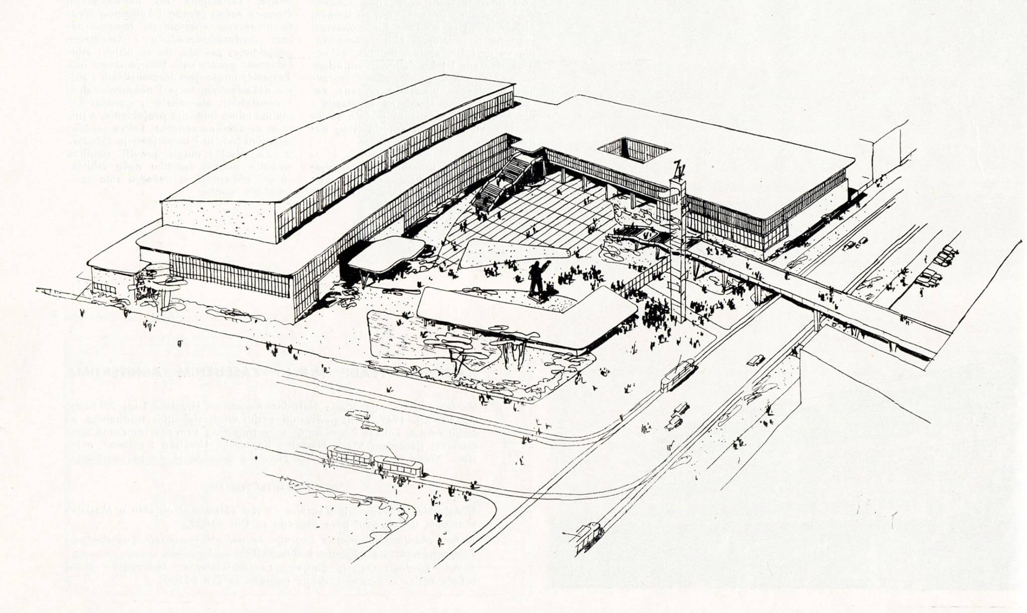 Riječ je o zgradi u obliku obrnutog slova L, s dva volumena različite visine. Iako je konstrukcija djelomično armirano-betonska, većina objekta izvedena je u drvu, s kojim je Haberle osobito volio raditi. Ujedno, to je i jedna od posljednjih zgrada javne namjene u Zagrebu u kojoj dominira drvo. Kako to obično biva s velikim projektima u Hrvatskoj, niti ovaj nije do kraja dovršen. Naime, 30-metarski oglasni stup od čeličnih cijevi te montažni čelični pješački most preko Savske nikad nisu izvedeni, piše Večernji list.