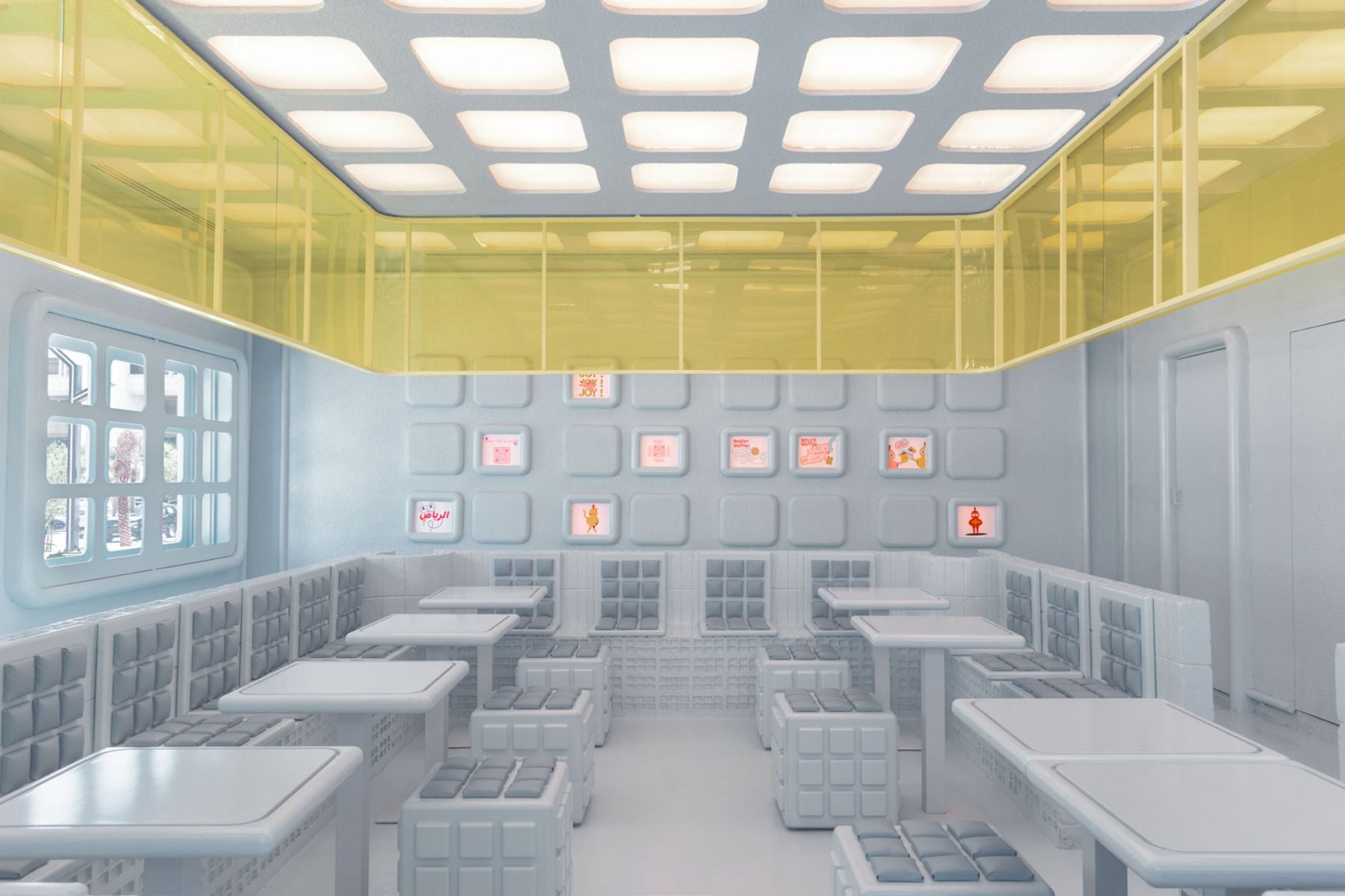 Španjolski studio Masquespacio, specijaliziran za dizajn interijera, proizvoda i brendiranje, dobio je neobičan zadatak – razviti zabavan i sveobuhvatan koncept za tvrtku ‘Novu Waffle‘ u Rijadu koja je u to vrijeme radila na proširenju poslovanja nakon uspjeha svoje trgovine koja je funkcionirala samo putem dostave.