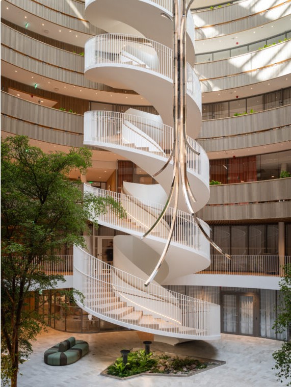 Prepoznajući da se inovacije ne događaju u izolaciji, radni prostori osmišljeni su tako da okupljaju ljude, potiču suradnju i olakšavaju slučajne sastanke. Svaki kat ima koristi od laboratorija koji dijele i stalni stanari i stanari koji rade zajedno, a neformalniji prostori kao što su prostori za odmor, krovna terasa i skulpturalno stubište, dodatno jačaju atmosferu suradnje.