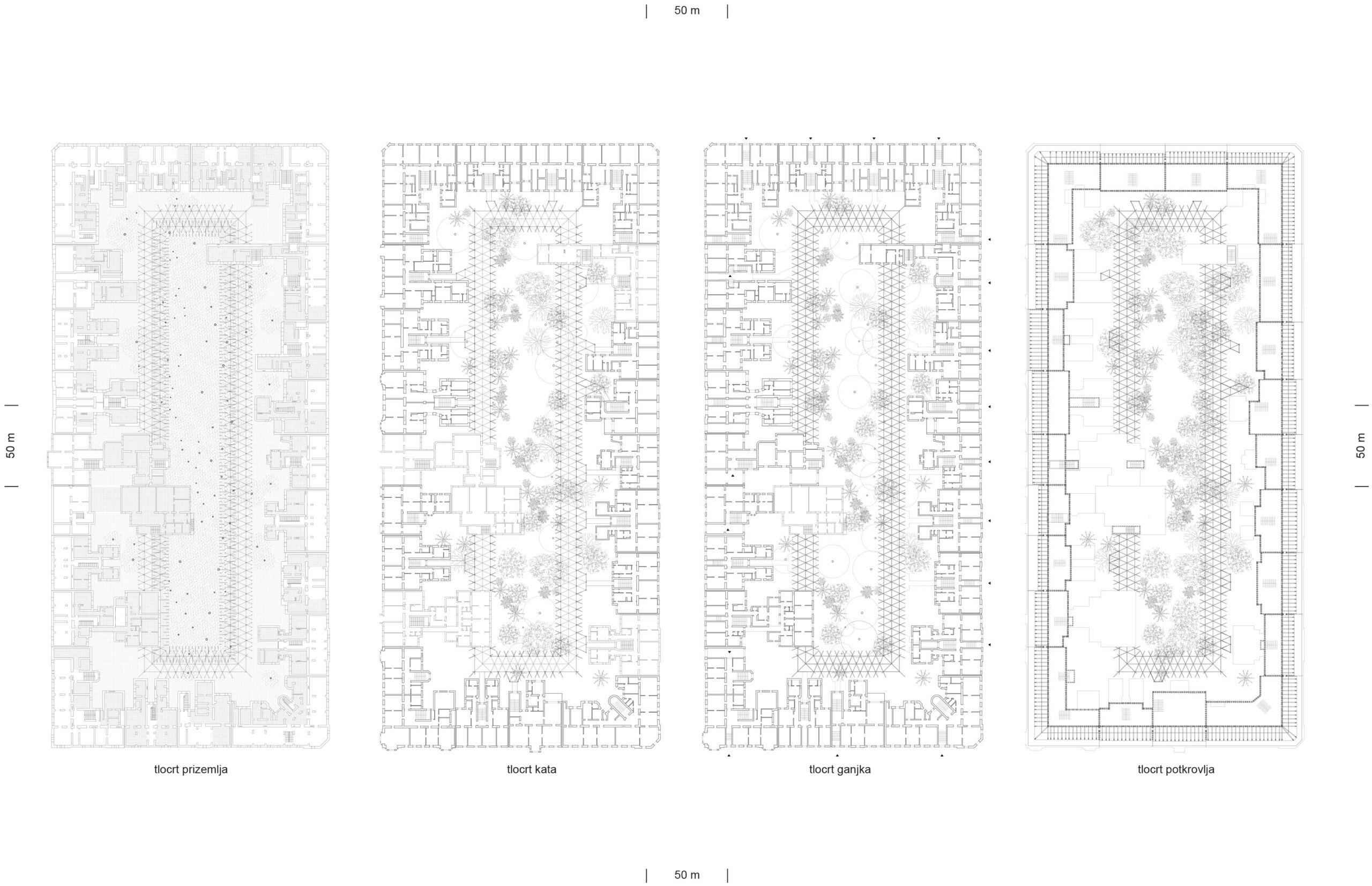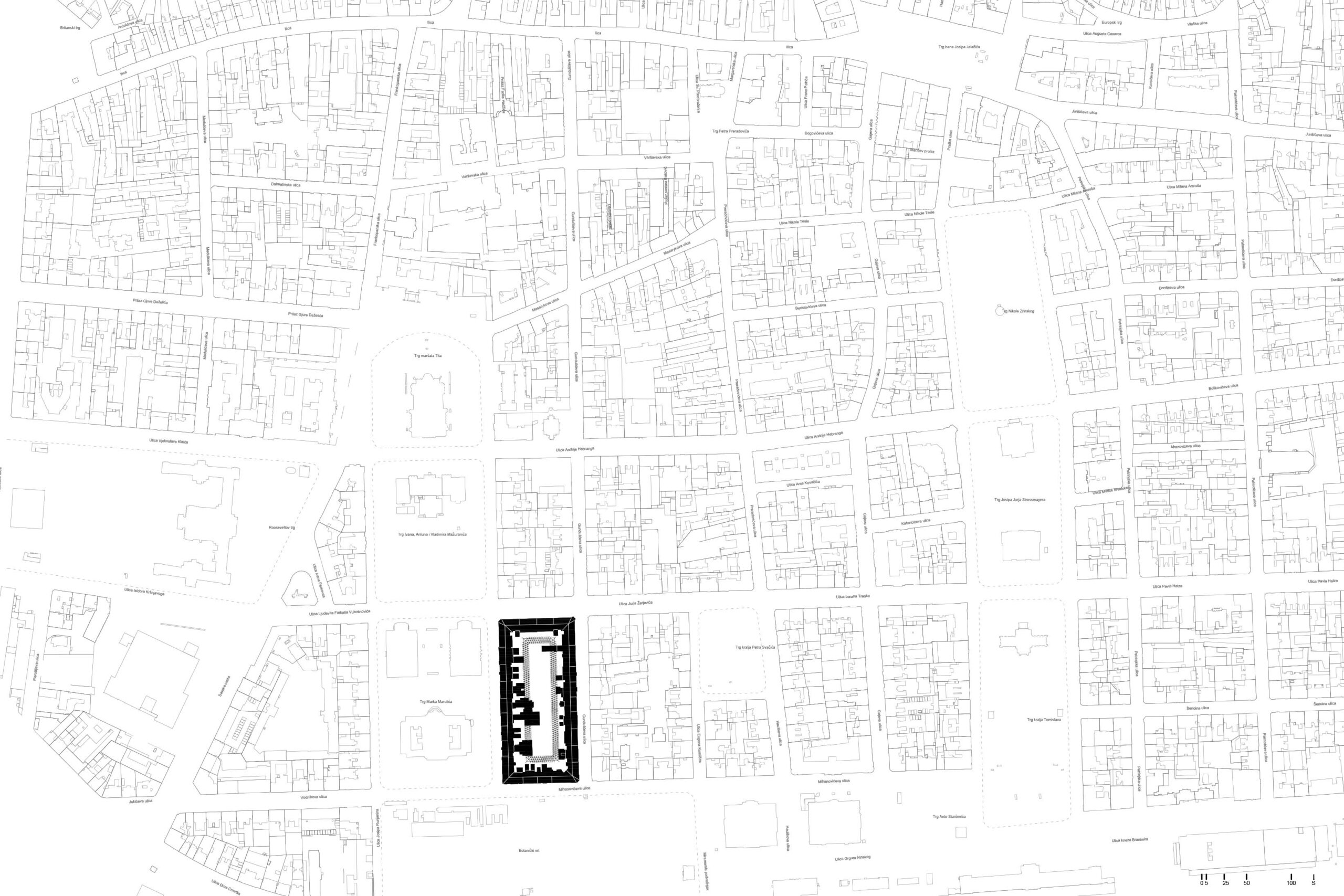 – Rehabilitacija donjogradskog bloka uvođenjem novih i transformacijom starih prostornih obrazaca. Donjogradski blok kao velika kuća. Niz kuća povezuje se ganjkom, prostori potkrovlja i krovova prenamjenjuju se u višenamjenske prostore (infrastrukturne, stambene, najamne, javne). Stambena palača sa stanovima proširenih funkcija.