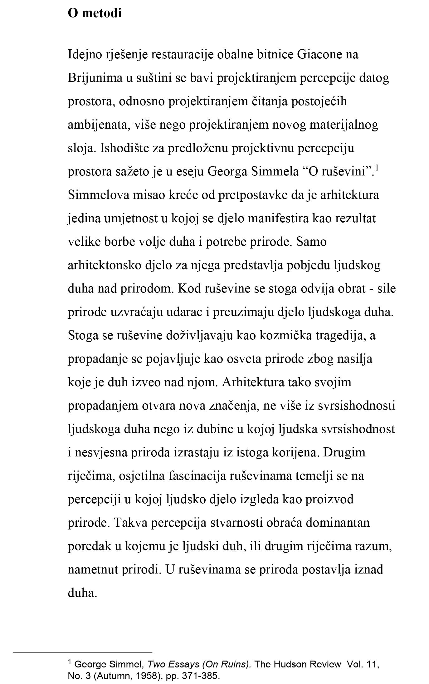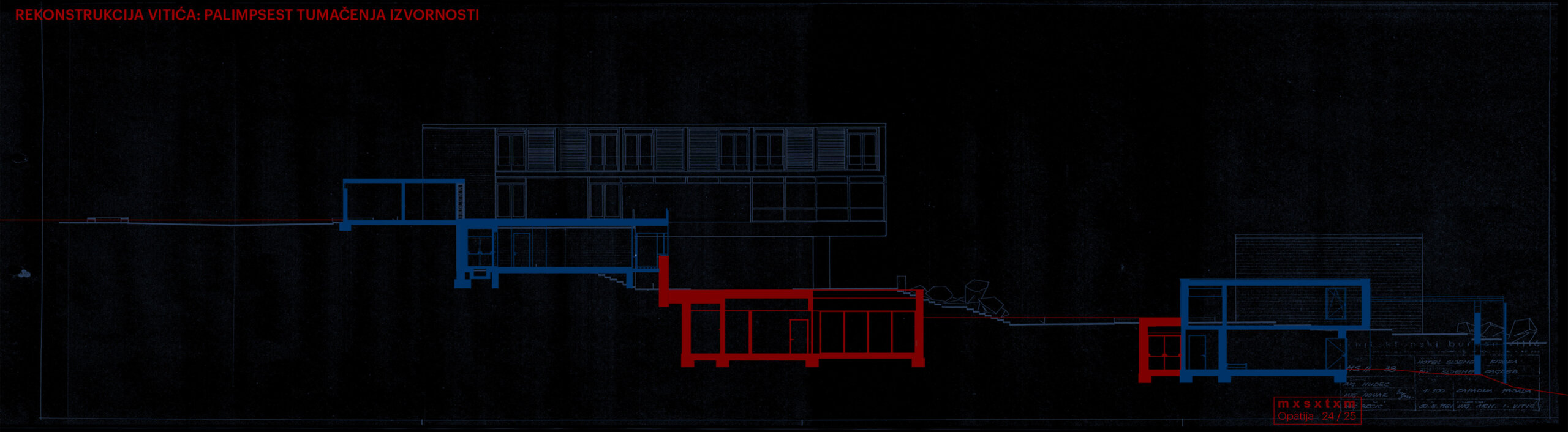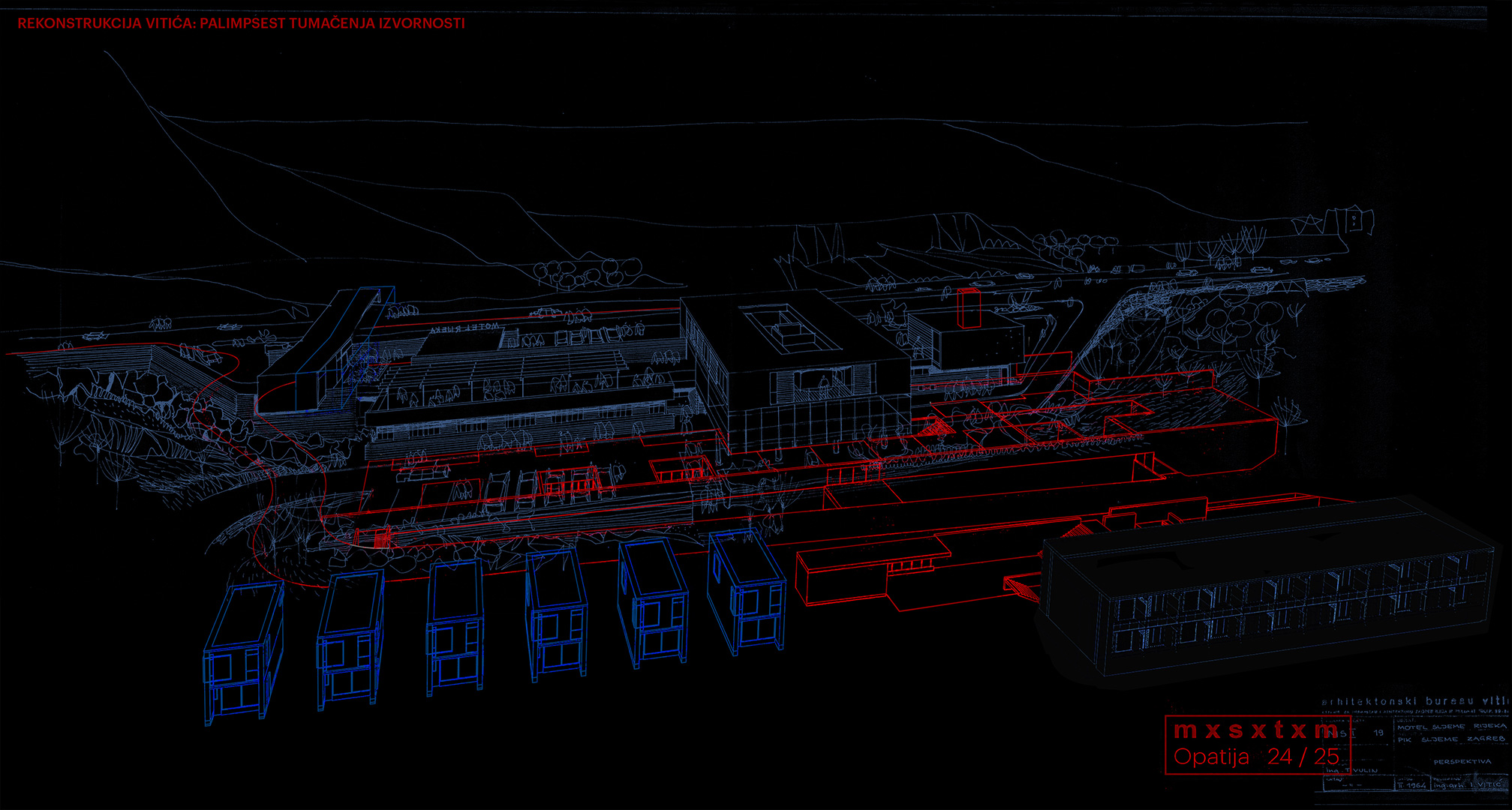 – Rad istražuje različita tumačenja izvornosti: od faksimilne rekonstrukcije očuvanih dijelova Vitićeva kompleksa, preko fantazmagoričnih interpretacija neostvarenih segmenata njegova izvornog projekta, do interpolacije novih elemenata suvremenog programa. Tipovi intervencija definirani su pragmatičnim kriterijima koji štite integritete različitih izvornosti, dok se njihovom interakcijom gradi nadpovijesni kulturološki palimpsest, navedeno je u opisu ovog rada.