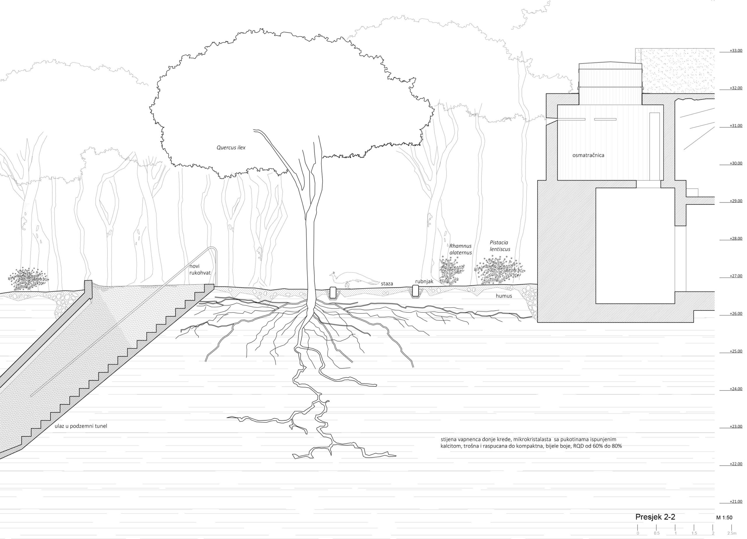 – …odnosno projektiranjem čitanja postojećih ambijenata, više nego projektiranjem novog materijalnog sloja koji bi se dodao u vidu građenja. Vođen pretpostavkom da se u ruševinama odvija obrat ljudskog duha i prirode, projekt sagledava prostor prvenstveno kroz dijalektički odnos prirode i prisutnosti ljudskih tragova – onoga što je preostalo, napisao je Jurcan.
