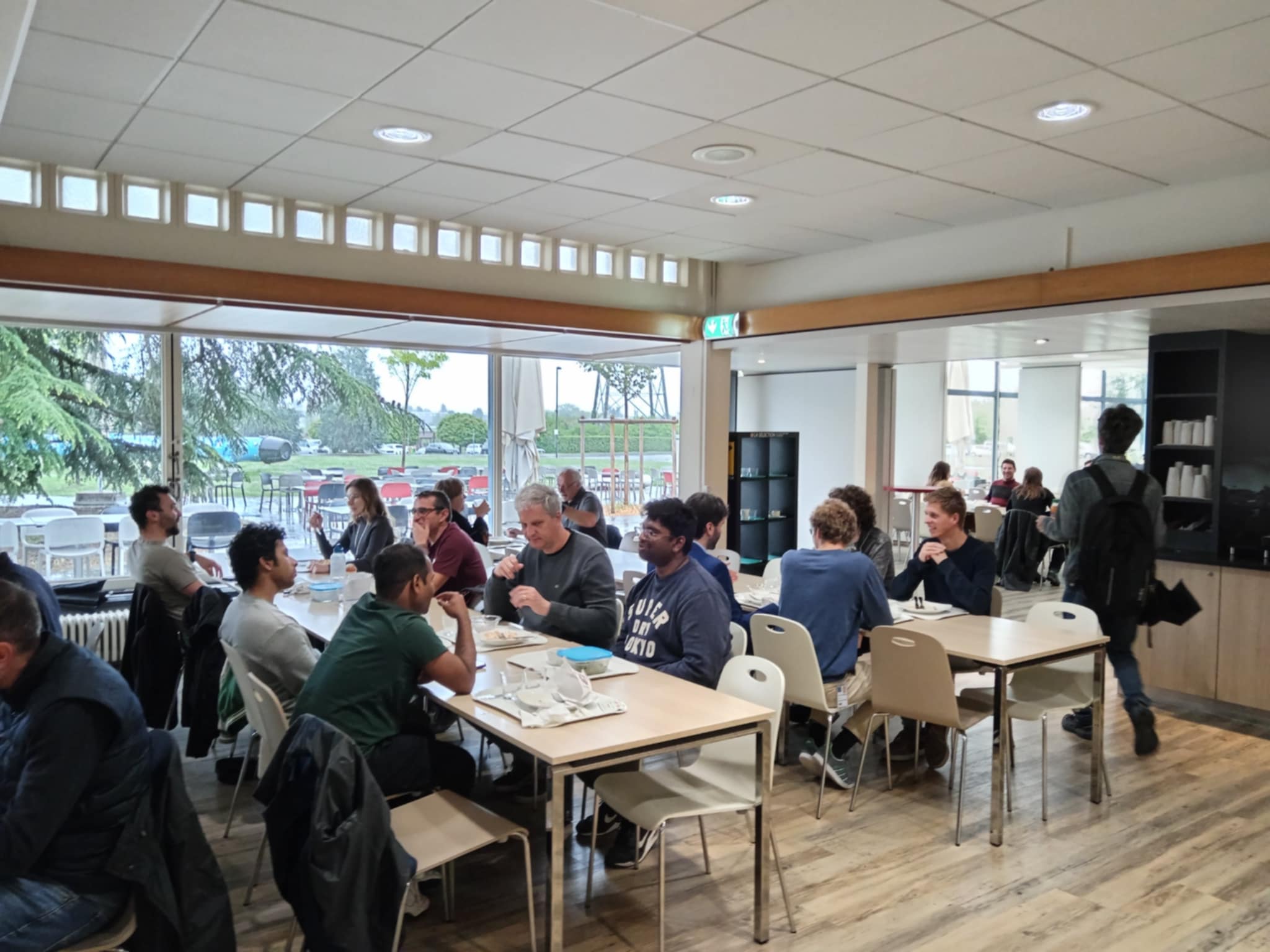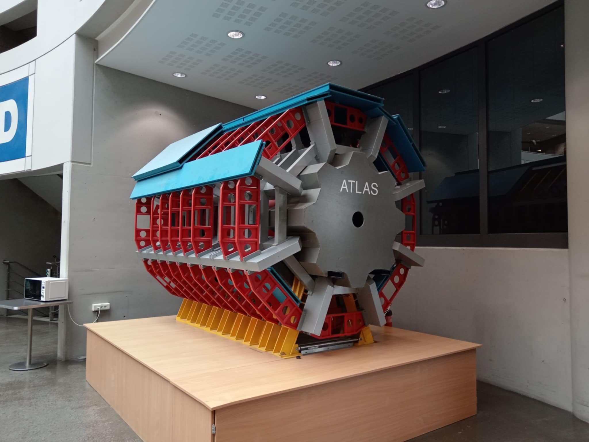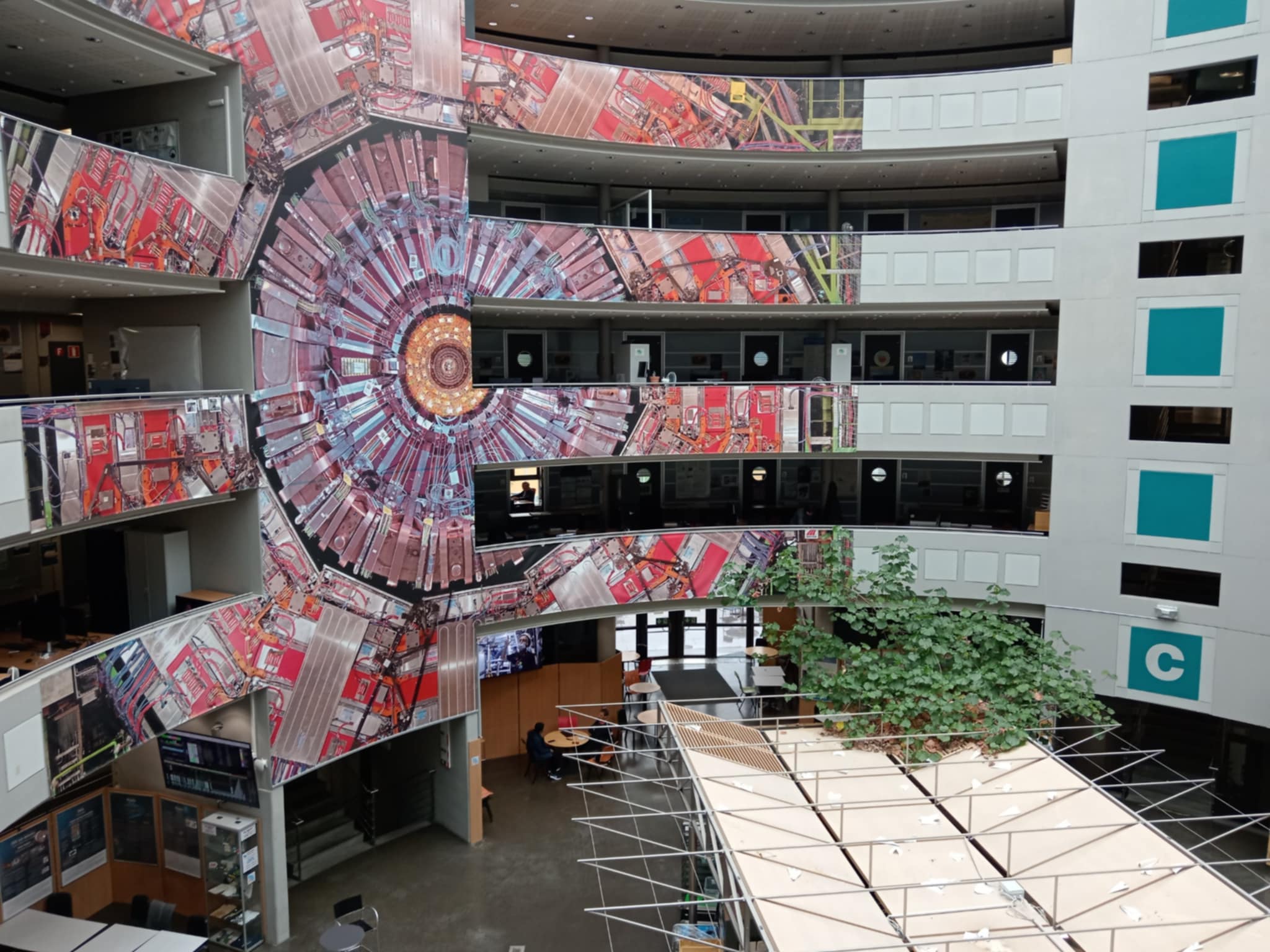 Iako je suradnja u istraživanju ključna filozofija među znanstvenicima, menza zgrade 40 je podijeljena na dvije zone. Na zonu posvećenoj detektoru Atlas i zoni posvećenoj detektoru CMS, što je vidljivo prema unutarnjem uređenju menze s prikazima ovih detektora i informacija o njima. Oba detektora su 2012. godine otkrila Higgsov bozon i međusobno potvrdila da su doista naišli na tu dugo čekanu česticu koja daje masu drugim česticama.