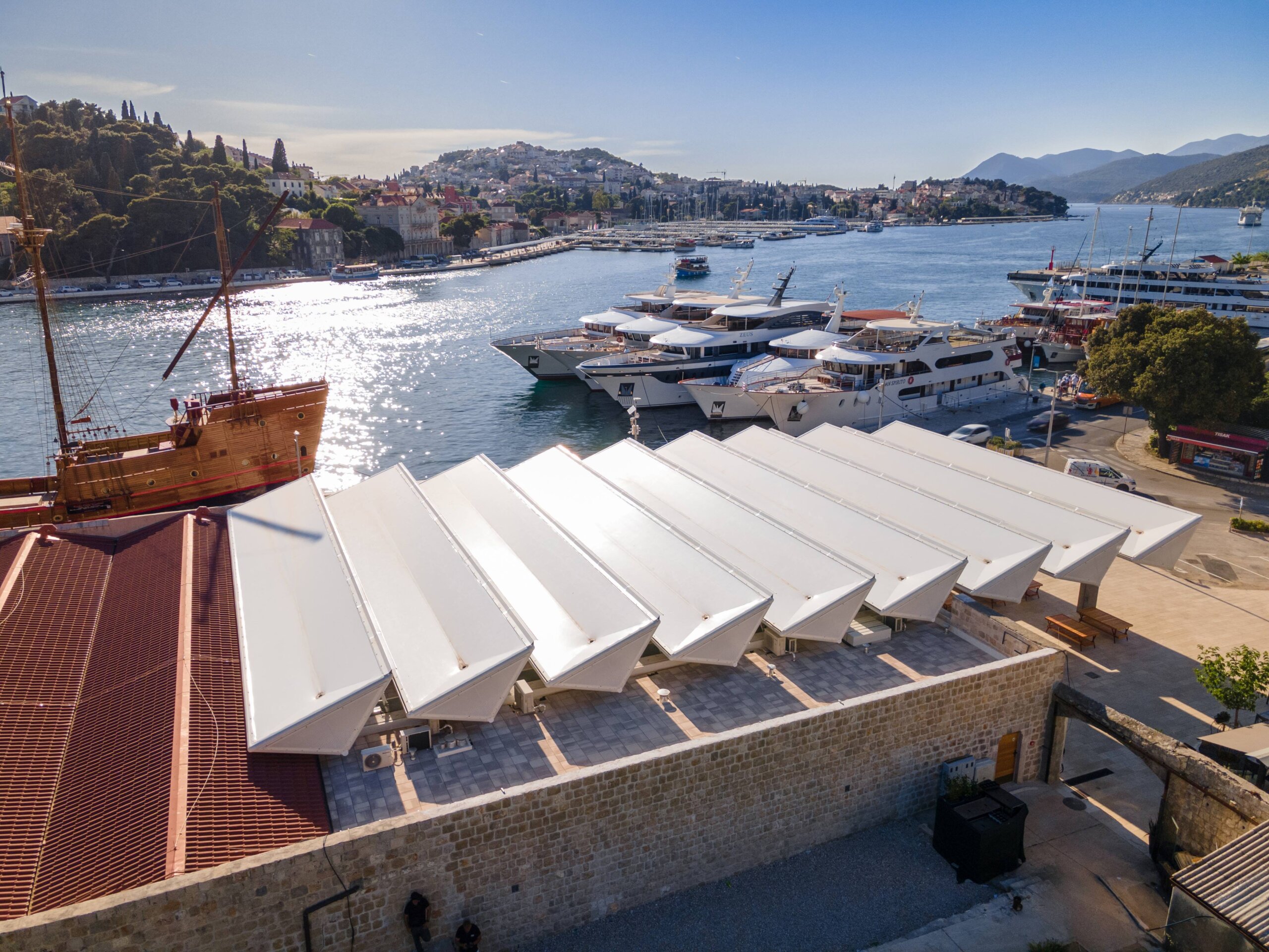 Ovaj sustav omogućuje otvaranje segmenata krova kako bi propustili prirodno svjetlo, čime prostor postaje prozračniji i fleksibilniji, savršeno se uklapajući u originalne vizure staroga grada – karakteristike koje su ključne za održivu arhitekturu.