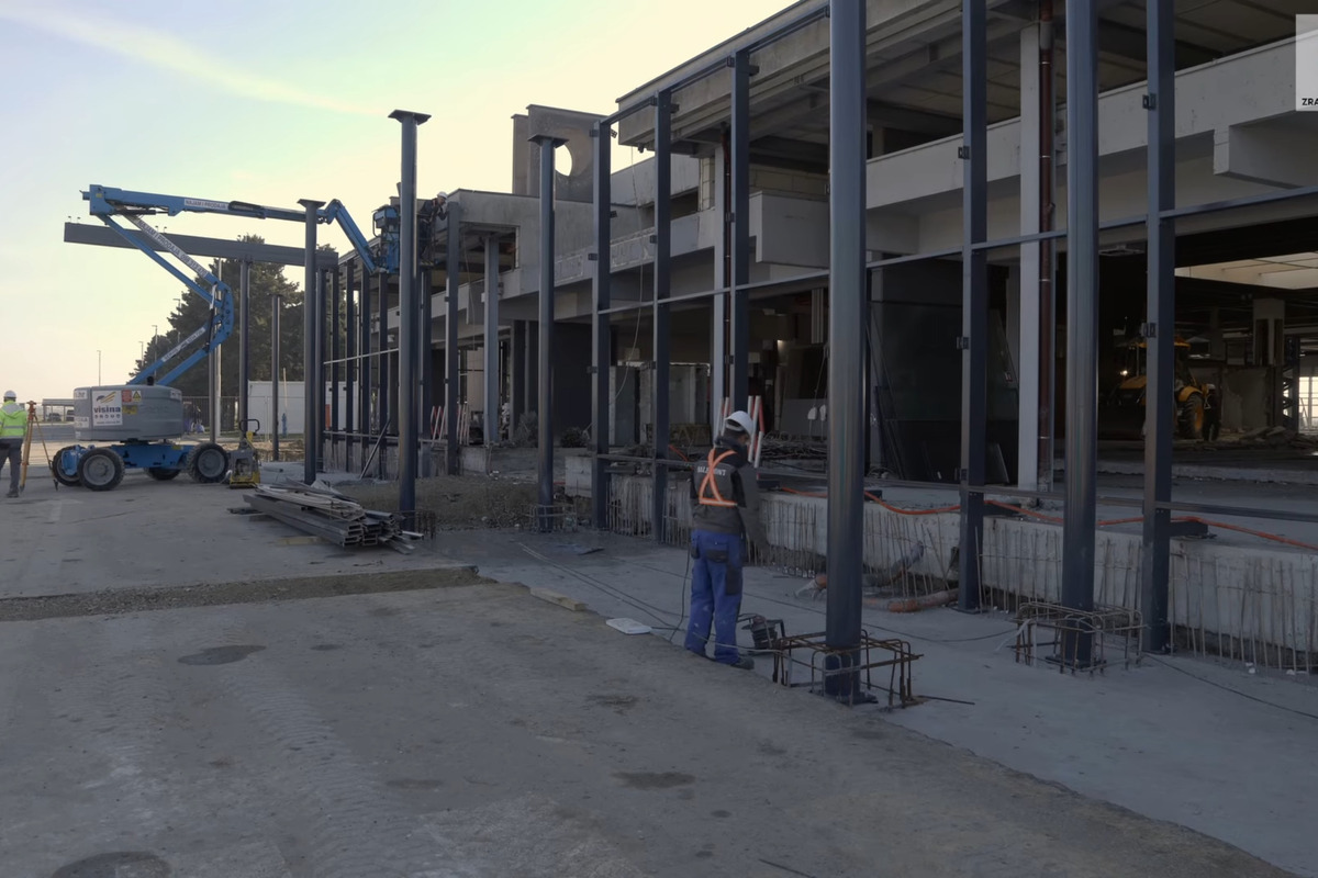 Montirana je čelična konstrukcija koja će nositi novu fasadu, a na zapadnom pročelju već su postavljene moderne aluminijske stijene. Završetkom krovne konstrukcije i betonskih temelja sada se jasno vide obrisi budućeg terminala.