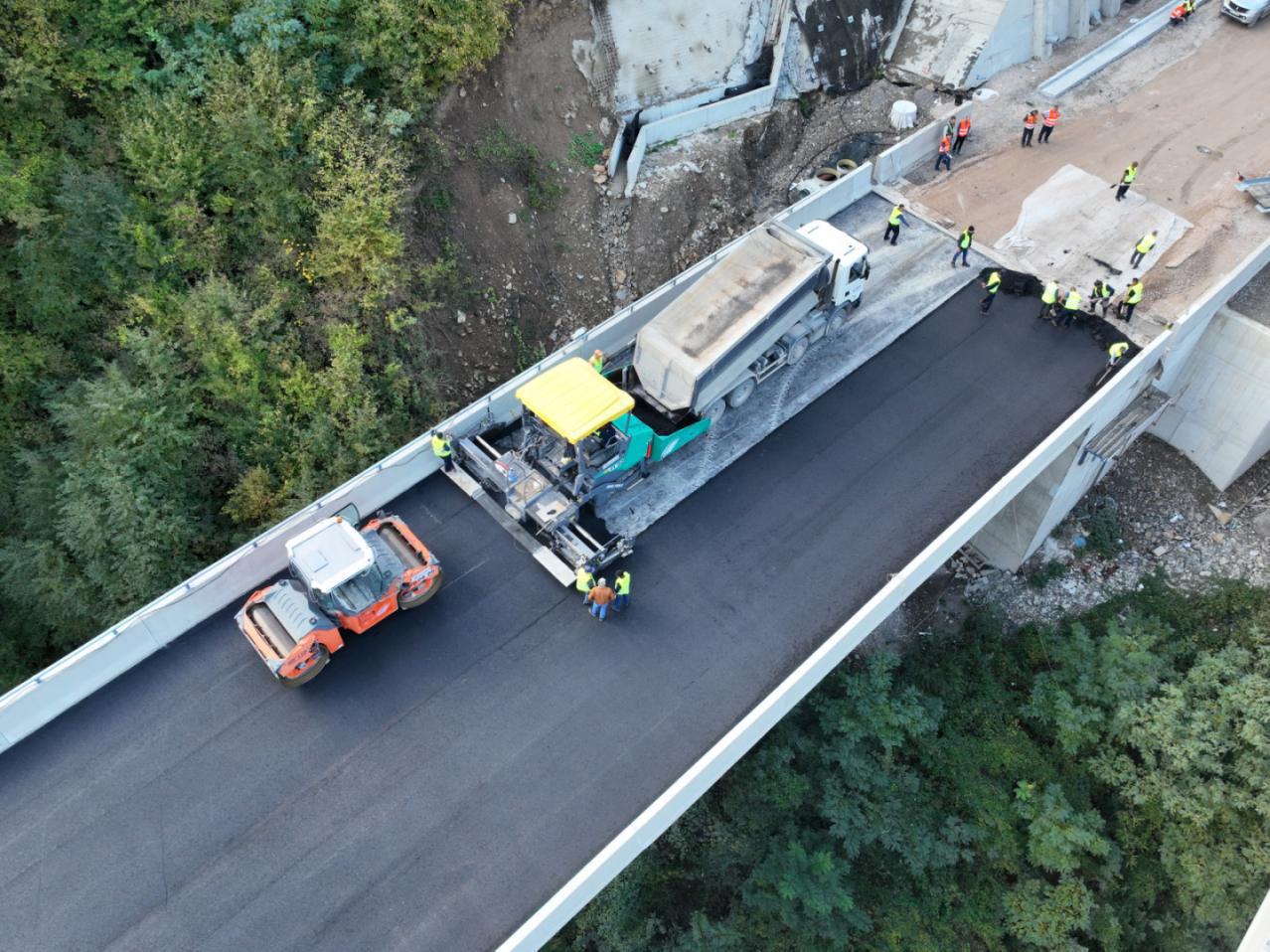 Na dionici trase Koridora V c Vranduk-Ponirka započelo je asfaltiranje, što predstavlja važan iskorak u realizaciji strateške trase dugu 5,3 kilometra.