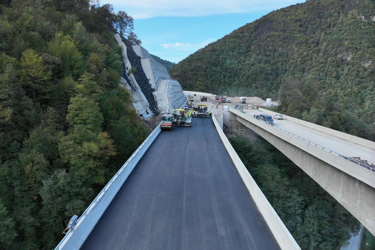Radovi postavljanja završnog sloja ovako velike i važne prometnice nemaju se priliku promatrati svaki dan, zato su prizori iz zraka koje je tvrtka također objavila posebno zanimljivi.