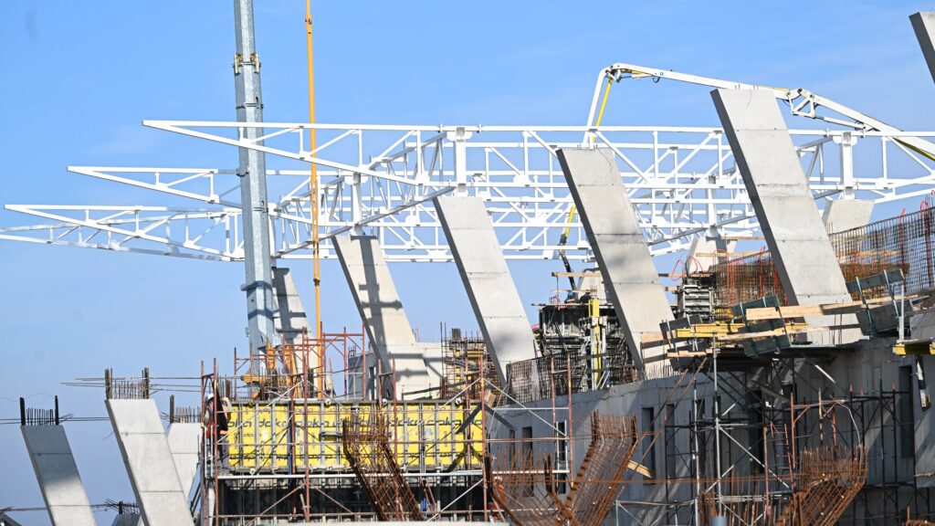 Na budućem stadionu dovršeni su gotovo svi armiranobetonski radovi, dok je u tijeku izvedba armiranobetonske konstrukcije sjedećeg dijela tribina. Izvedena je i većina armiranobetonskih stupova koji će nositi čeličnu krovnu konstrukciju za natkrivanje tribina. Završeni su i trakasti temelji prilaznog pješačkog mosta za pristup stadionu, dok se radovi na njegovim nadzemnim elementima trenutačno izvode.