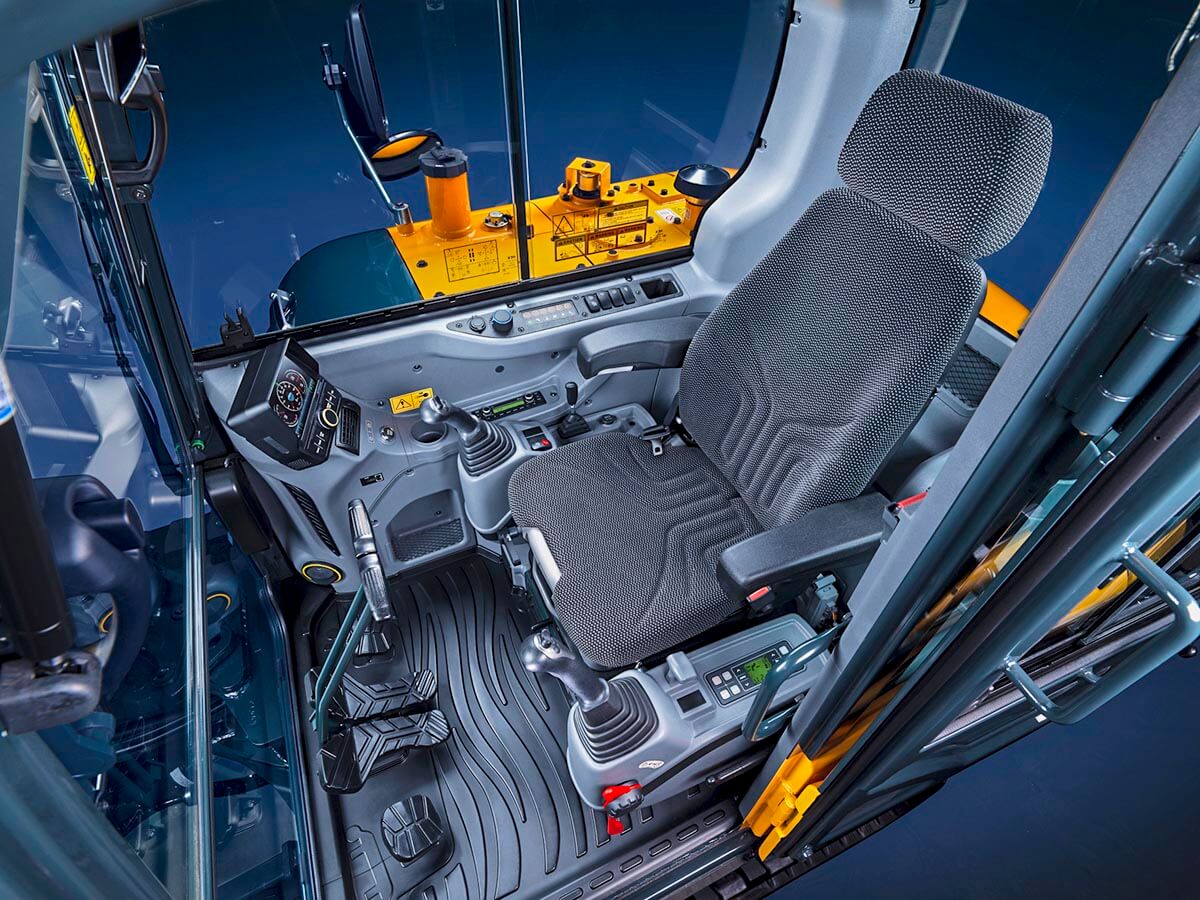 Uz to, vožnja i rad s ovim strojem pravo je zadovoljstvo, ako je vjerovati proizvođaču. Prostrana kabina nudi bolji pregled i veću udobnost, čineći dugotrajne poslove mnogo ugodnijima. Proportionalne ručice i 7-inčni dodirni ekran samo su neke od pogodnosti koje nudi, a tu su i Bluetooth radio, trostupanjsko grijanje sjedala te poboljšana klima-uređaj s prednjim i stražnjim izlazima zraka.