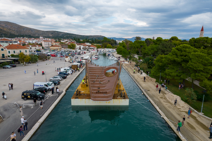 Novi pješački most preko Foše stigao je u Trogir iz vranjičkog brodogradilišta. Most je dopremljen posebnim tegljačem, a ruta od nekoliko nautičkih milja trajala je nešto više od četiri sata. Putovanje je s velikim zanimanjem pratilo lokalno stanovništvo jer je prizor uistinu bio nesvakidašnji. Pogledajte galeriju: