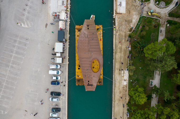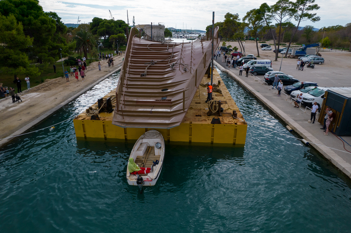 U središtu Trogira, kao i na plovnom putu od vranjičkog brodogradilišta do ove lokacije prava je atrakcija jučer bio novi pješački most koji će biti postavljan preko Foše. Konstrukcija mosta teška je 65 tona, najveća širina iznosi 10,40 metara, a visina je nešto preko 4 metra. Raspon je 25, a ukupna dužina 30 metara. Prema najavama specijalnom će dizalicom biti podignut u jednom danu. Vrijednost investicije iznosi približno milijun eura.