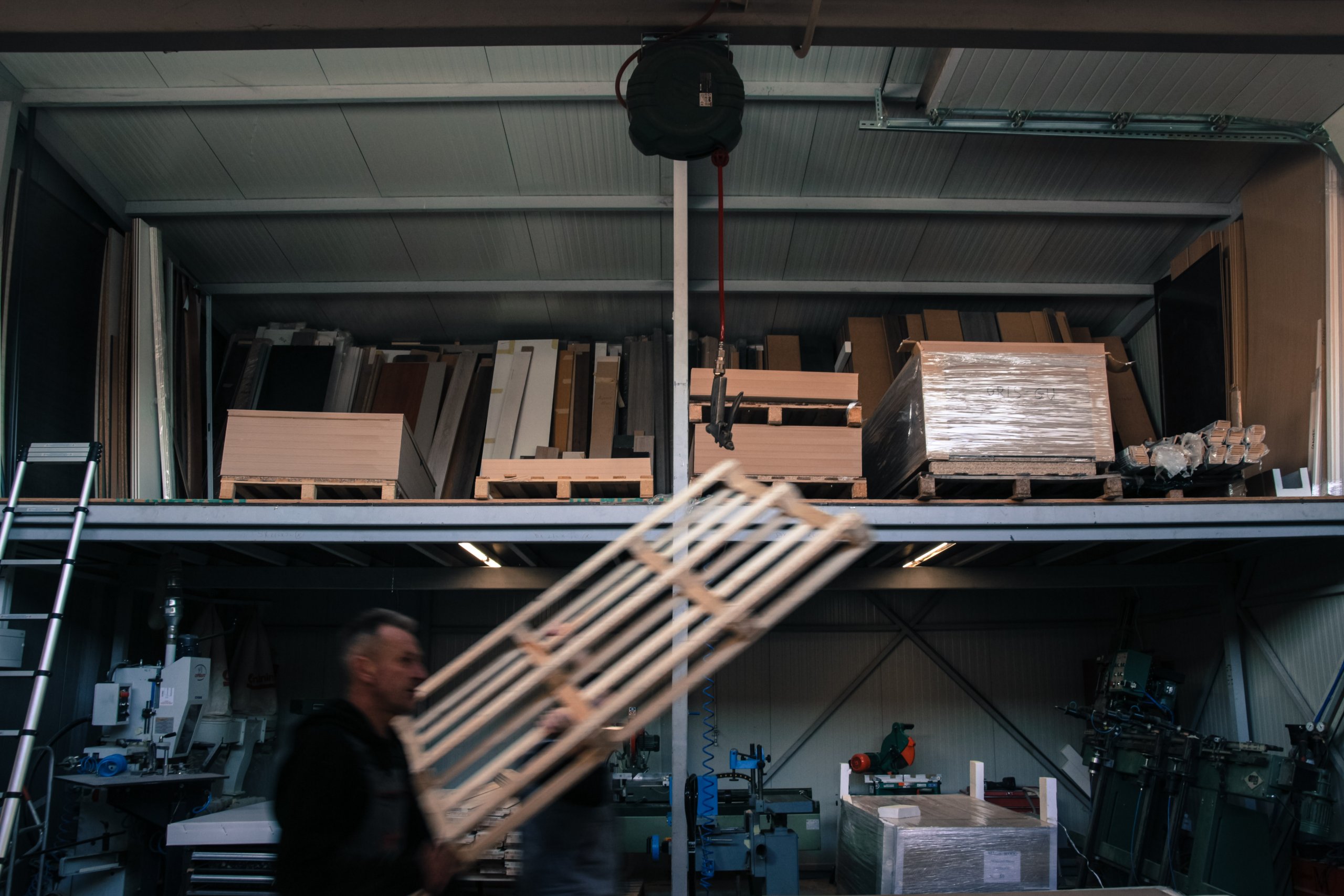 U više od 900 četvornih metara smješteni su pogoni za proizvodnju sobnih vrata, CNC obradni centar za drvo, prostor za doradu protuprovalnih vrata, velike police s tonama materijala, ponajviše drvenih panela, prostorija za odmor, brojne pile i beskrajne radne ploče s alatima te skladišni prostor.