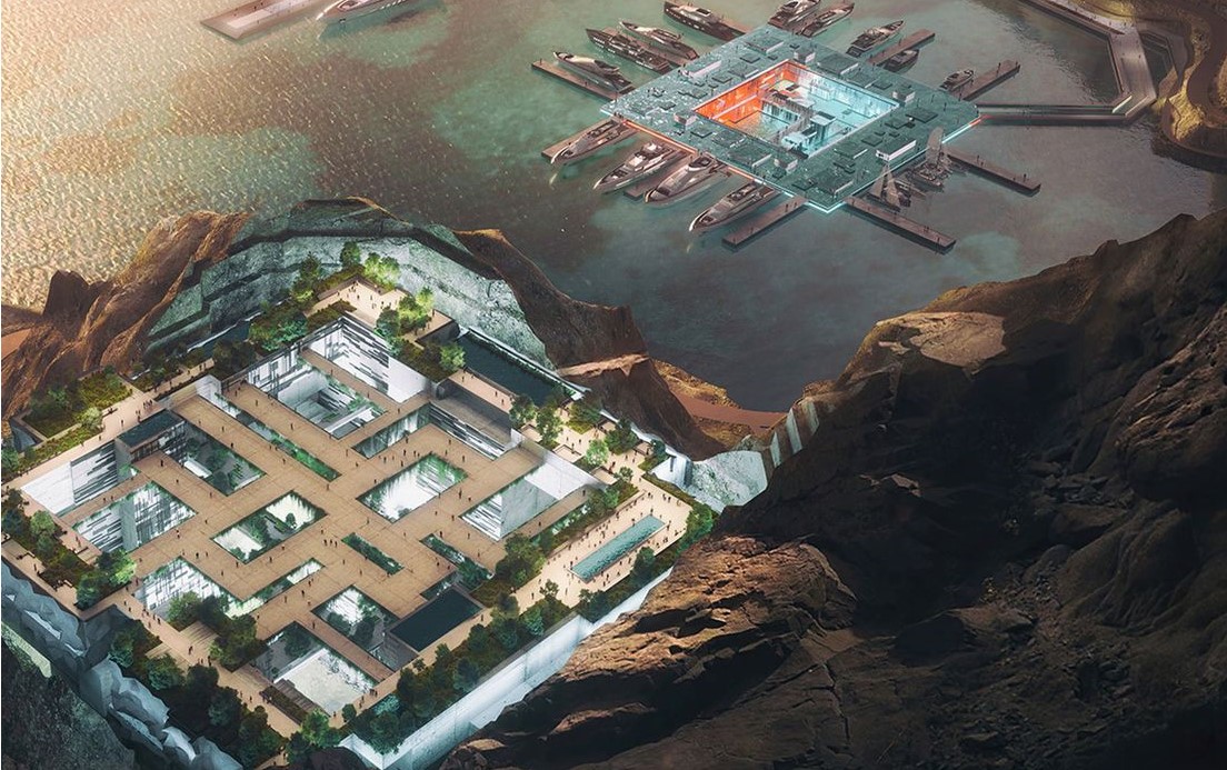 Pogled izbliza pokazuje stazu okruženu mega-vilama i palačama, zajedno s heliodromom i pristupom plaži. No, navodno je i vidljiva činjenica da je rad na Liniji zastao. I to, prema nedavnim izvješćima, zbog spiralnih troškova i problema s jedinstvenim zahtjevima njezinog inženjeringa i izgradnje.