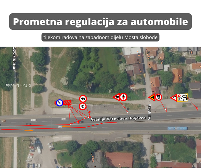 Tijekom izvođenja radova putovat će se na jednoj strani mosta, dok će se na drugoj izvoditi radovi. S radovima će se započeti na zapadnome dijelu mosta pa će njegov dio u smjeru Velike Gorice biti zatvoren, a promet će se odvijati na istočnoj stani, po preostalom slobodnom kolničkom dijelu jednim prometnim trakom za svaki smjer. Pješaci i biciklisti će se također kretati po slobodnoj strani nogostupa u oba smjera, ovisno o trenutnoj prometnoj regulaciji, obavijestili su iz Grada.