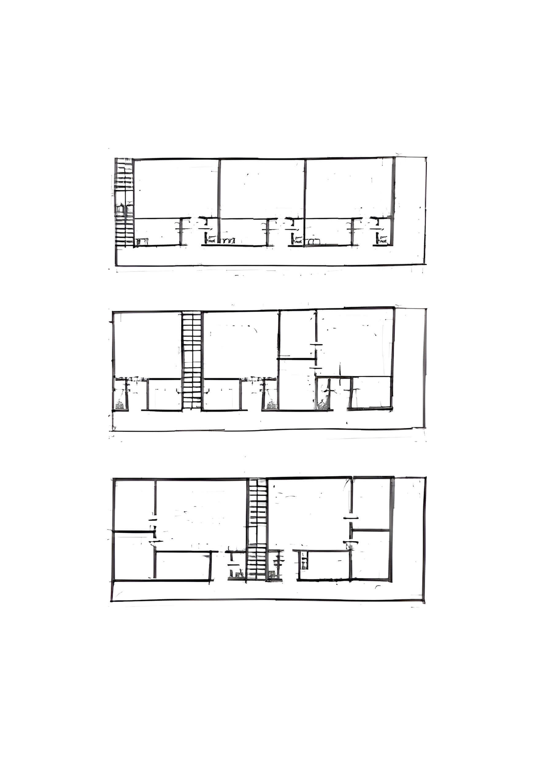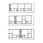 tri varijacije tlocrta, ovisno o položaju u zgradi | ilustracija (D. Radović Mahečić: Socijalno stanovanje međuratnog razdoblja)