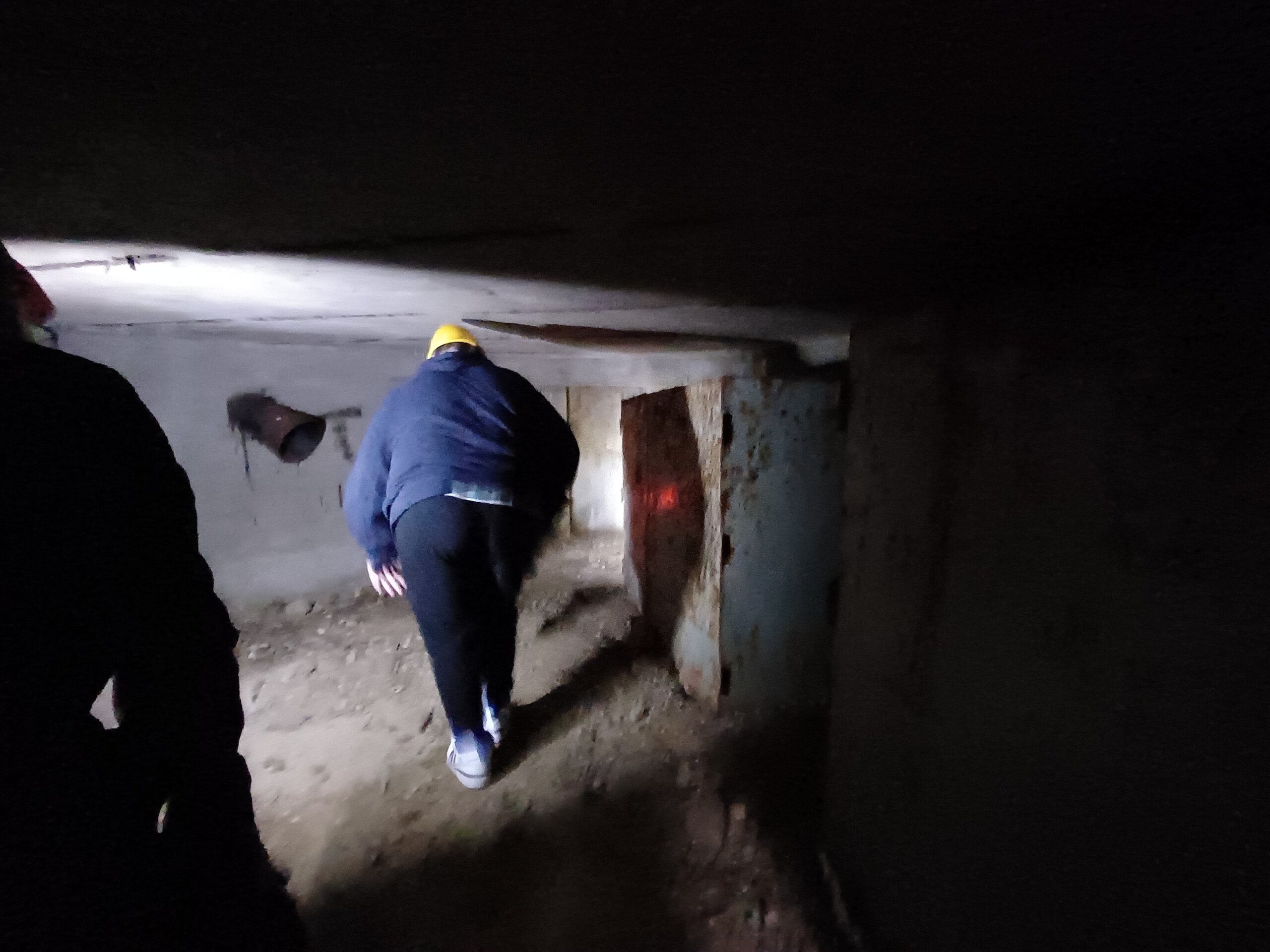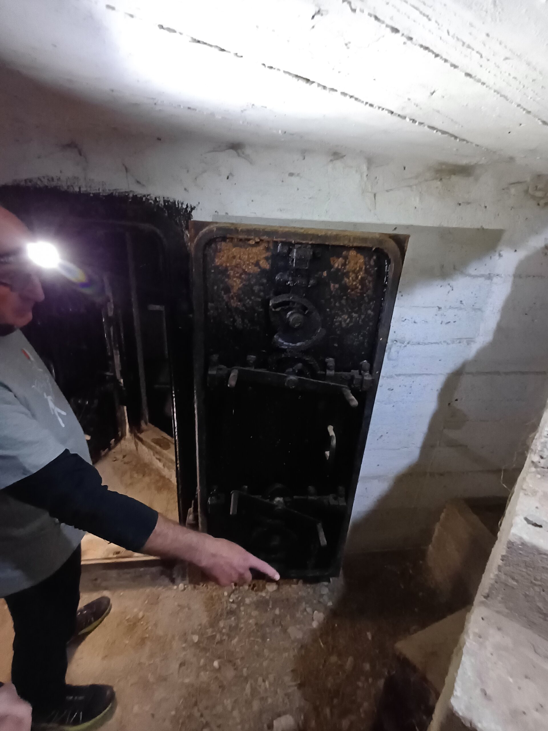 Kako po četvero, jer nas više u bunker ne može odjednom stati, oprezno – korak po korak, stepenicu po stepenicu – prolazimo isprva kroz grm, a onda i kroz prve metre skučenog armiranobetonskog obrambenog objekta koji je velikim dijelom zakopan u zemlji, primjećujemo da je u dobrom stanju. Krećemo od prostora za ‘top’, nakon čega se spuštamo u podzemnu prostorijicu za ljudstvo, a dok prolazimo kroz masivna crna željezna vrata prema sobici sa četiri sklopiva kreveta, dobivamo upozorenje: ‘Pazite na vrata, još su masna’.