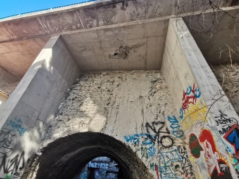 Sanacija kamenih zidova i svoda otvora provodit će se pak injekcijskim ojačanjem i konsolidacijom ziđa, fugiranjem oštećenih sljubnica, uključujući zamjenu oštećenog kamena novim kamenom, ugrađenim u cementnom mortu.