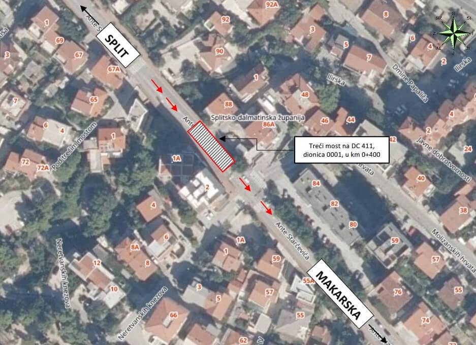 Hrvatske ceste zaključile su javnu nabavu za izvanredno održavanje građevine ‘Treći most’ na državnoj cesti DC411 kroz Makarsku. Riječ je o poslu vrijednom približno milijun eura koji će obaviti tvrtka Mar. Trebala bi dovesti u red prometnicu koja ubrzano propada posljednje desetljeće. Postojeće stanje je očajno, kolnik ima pukotine na više mjesta, ograde je uhvatila korozija. No u najgorem je stanju kamena podkonstrukcija čiji su elementi uvelike izgubili vezivni materijal pa je stabilnost poljuljana.