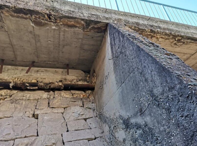 Obzirom na nedovoljnu visinu pješačkih ograda, te nedostatak odbojnih ograda i time nedovoljnu razinu zaštite, na mostu je ugrožena je prometna sigurnost. Uz to, ističe se, postoji degradacija AB ploča nogostupa. Tako da obuhvat sanacije previđa uklanjanje pješačkih ograda, ploča nogostupa i rubnjaka te izvođenje novih nogostupa, rubnjaka i zaštitnih ograda u skladu s propisima.