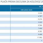 Prosječna mjesečna neto plaća iznosila je 7.679 kuna, što je nominalno više za 1,4%, a realno za 1,3% u odnosu na prethodni mjesec. U istom razdoblju je došlo i do porasta bruto plaće – iznosila je 10.466 kuna, što je nominalno više za 1,6%, a realno za 1,5%. U sektoru građevinarstva, prosječna neto plaća je iznosila 6.259 kuna, a bruto 8.359 kunan.
