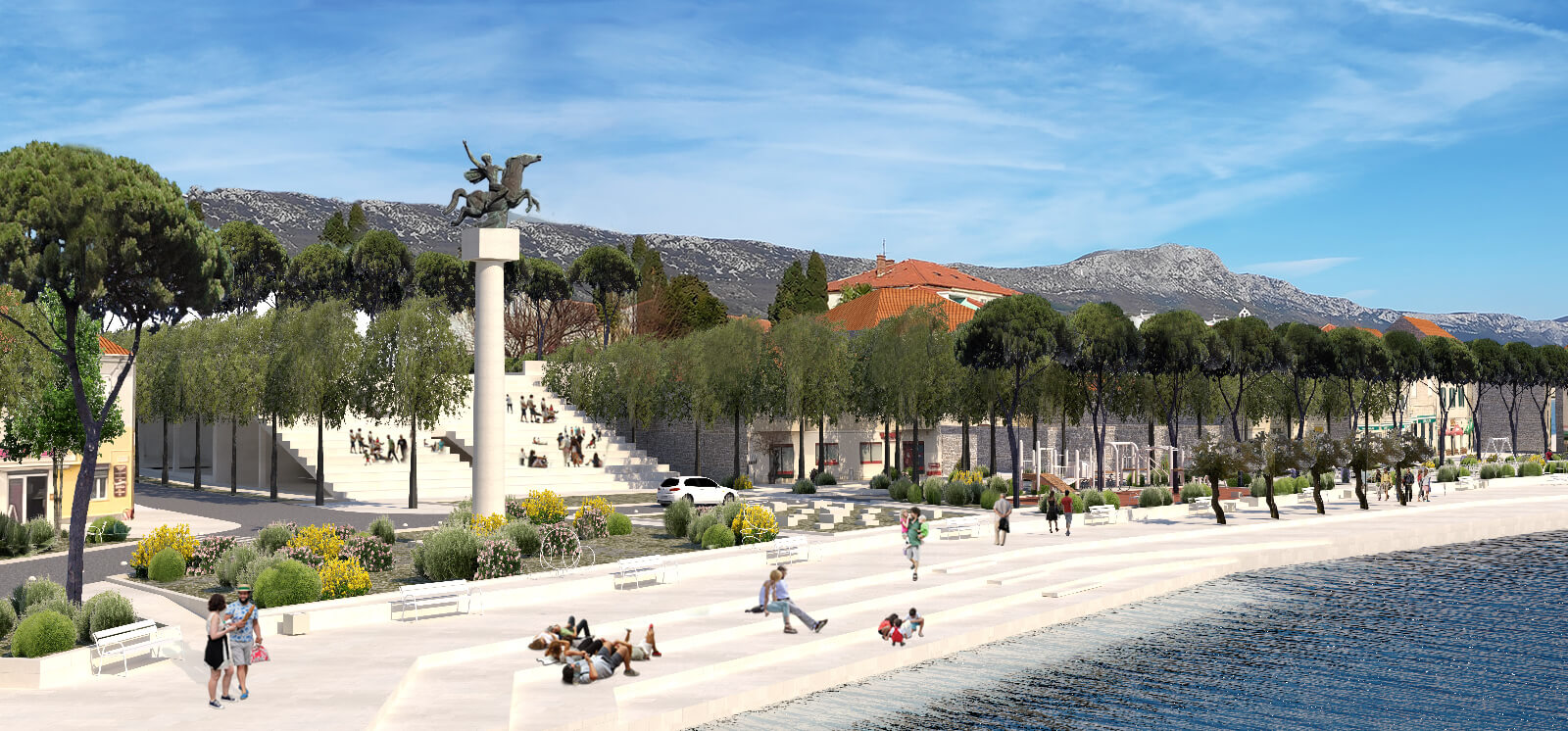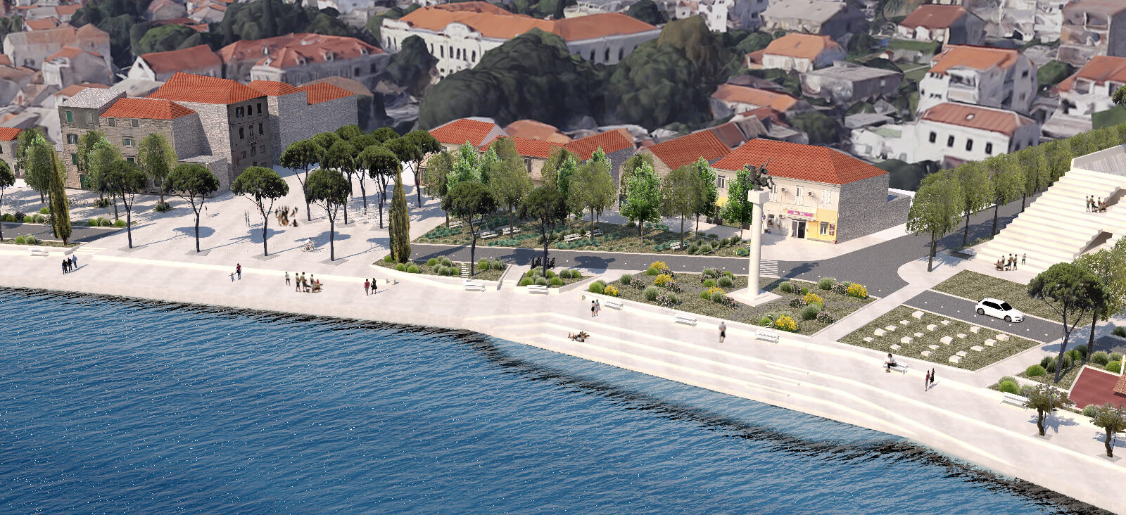 Naglasili su i kako je cijeli potez rive prekinut akcentima u prostoru – trgovima koji mijenjaju dinamiku prostora, stvaraju snažne prostorne repere, ali i usporavaju prostornu dinamiku, stvaraju mjesto zadržavanja. Tu se prostor čisti i otvara te se stvara kontinuirana veza od naselja prema moru.