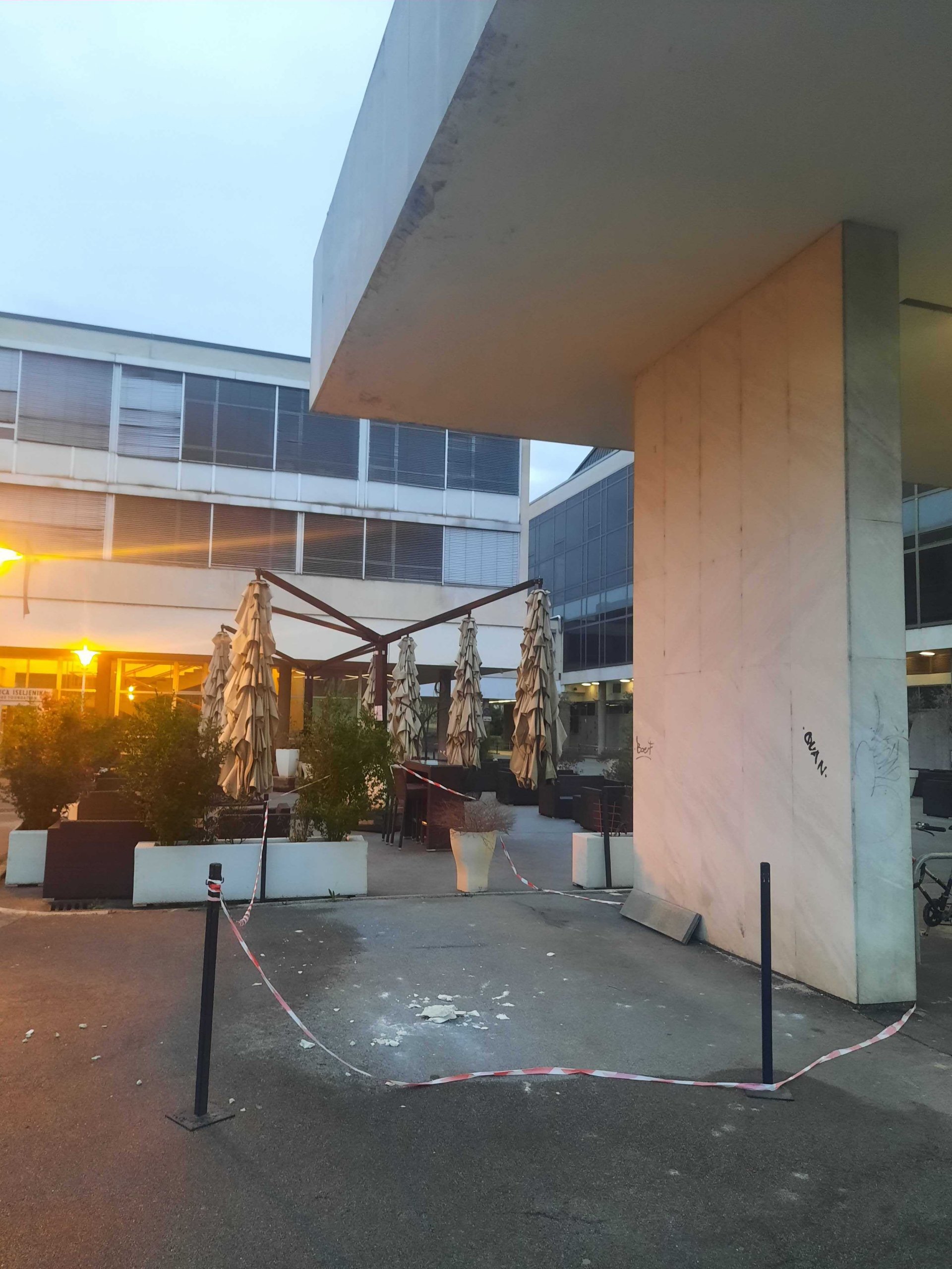 Žbuka je pala nedaleko od mjesta na kojem se nalazi parking za bicikle.
