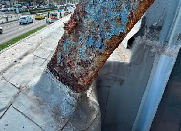 Na zategi 4 uz ljuštenje čelika vidljivo je i smanjenje presjeka, a i taj problem je ponavljajući. Sa zatege 8 doduše nije skinuta obloga te ova zatega nije dostupna za pregled. Ipak, na sidrenom elementu te zatege uočen je potpuni izostanak AKZ-a, s uznapredovalom korozijom i ljuštenjem čelika.