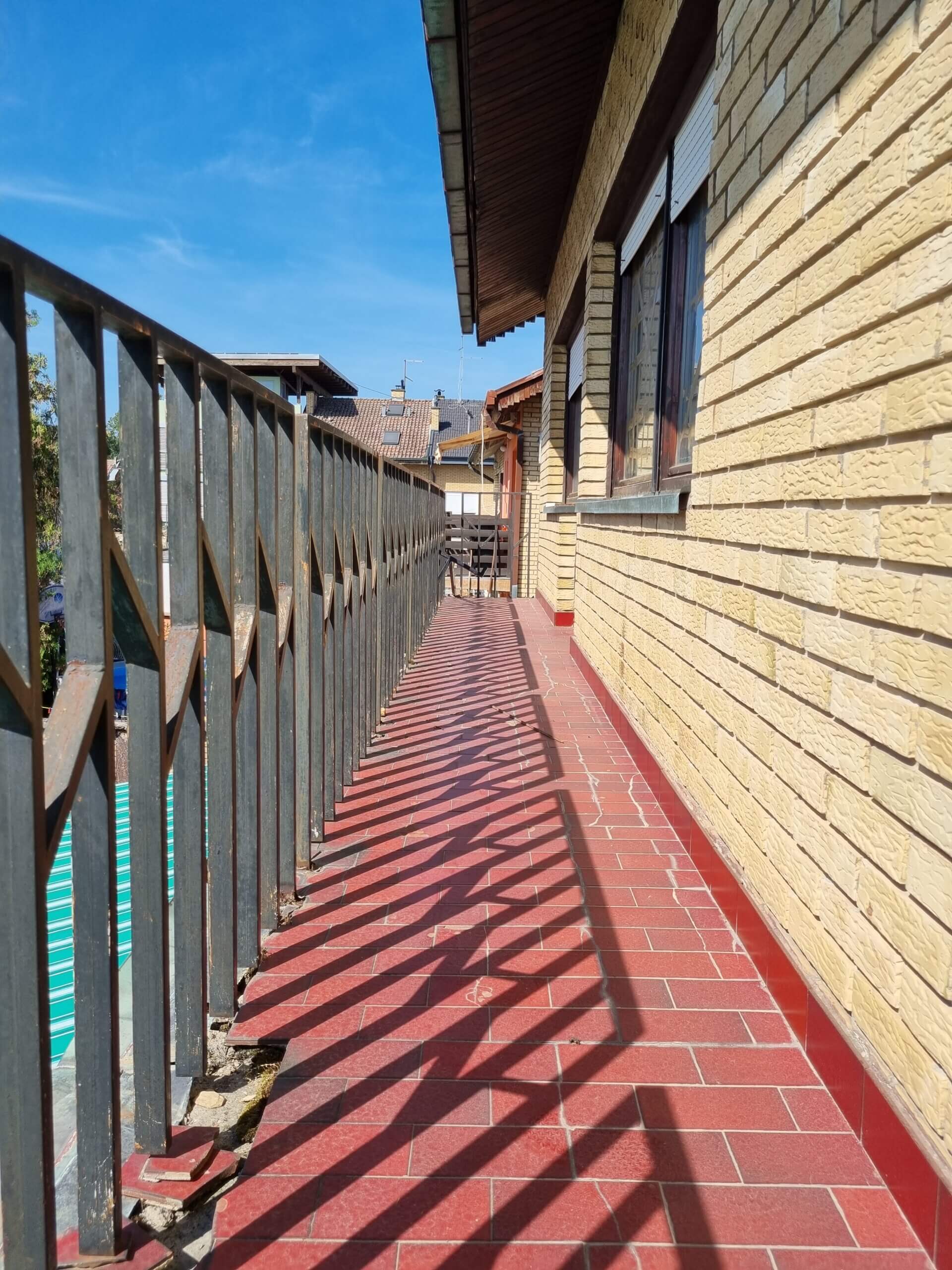 S terase povrh dvorišta uklanja se stara ograda, proširuje se za jedan metar, radi se nova podna površina i nova ograda. Također, na međi dvaju kuća biti će podignut zid koji će omogućiti privatnost vlasnicima druge kuće ‘iz para’. Gornji balkon se zbog iznimno loše statike ruši, a na njegovom mjestu neće biti rađen novi. Umjesto njega konstruirat će se nadstrešnica koja će pokrivati cijelu terasu i pružati hlad.