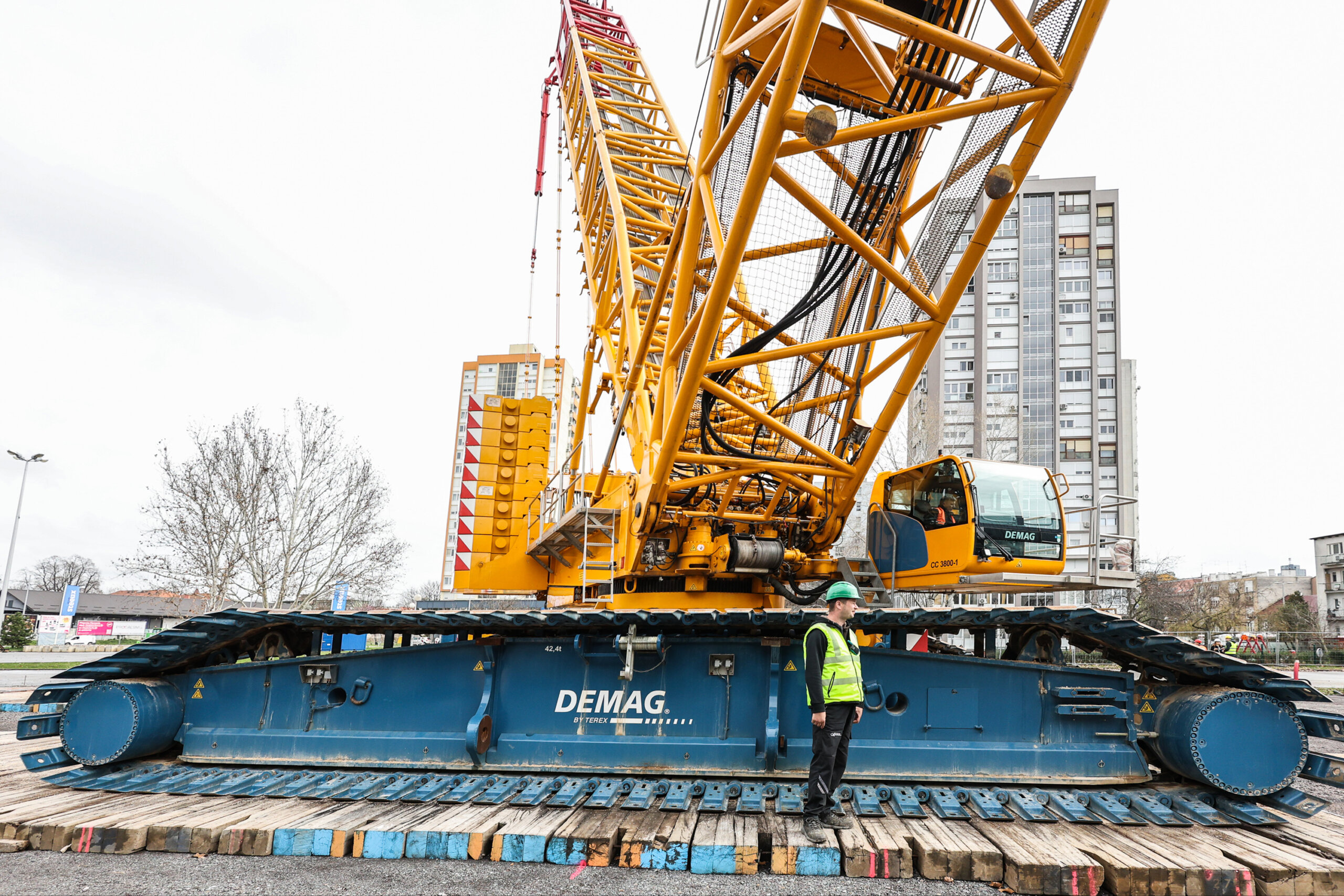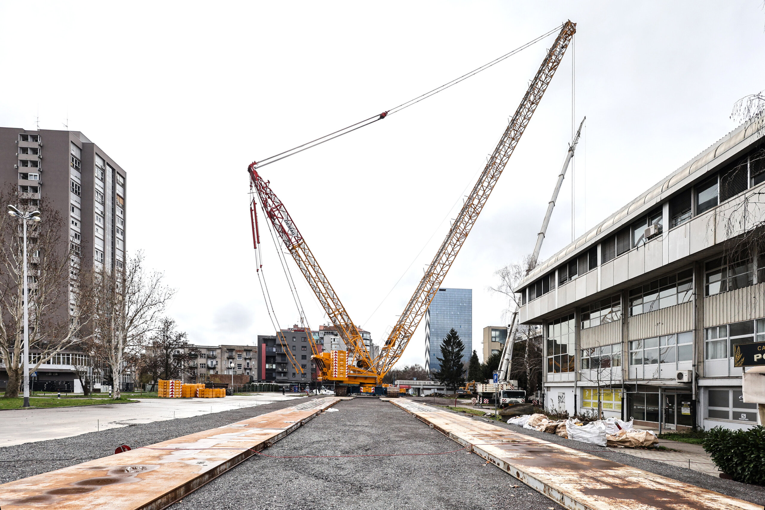 Do Doma sportova više se ne može. Nakon višetjedne montaže, ispred poznate zgrade konačno je podignut megalomanski kran visok 90 metara koji može dići 650 tona. Stoji na čak dvije gusjenice duge 10 metara, ima standardnu zaštitu od pada i najbolju ergonomiju u klasi, pohvalili su se iz Grada Zagreba.