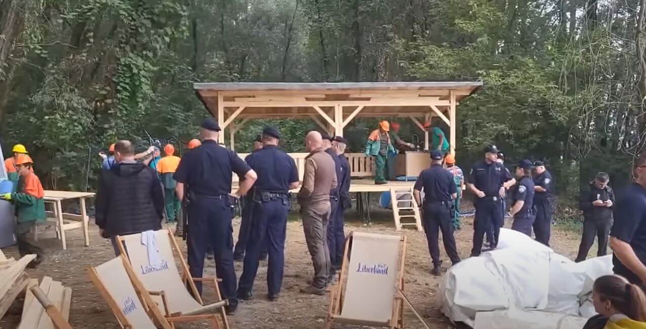 Policija i inspektori Hrvatskih šuma upali u samoproglašeni Liberland i srušili nezakonite objekte 3. listopada 2023.