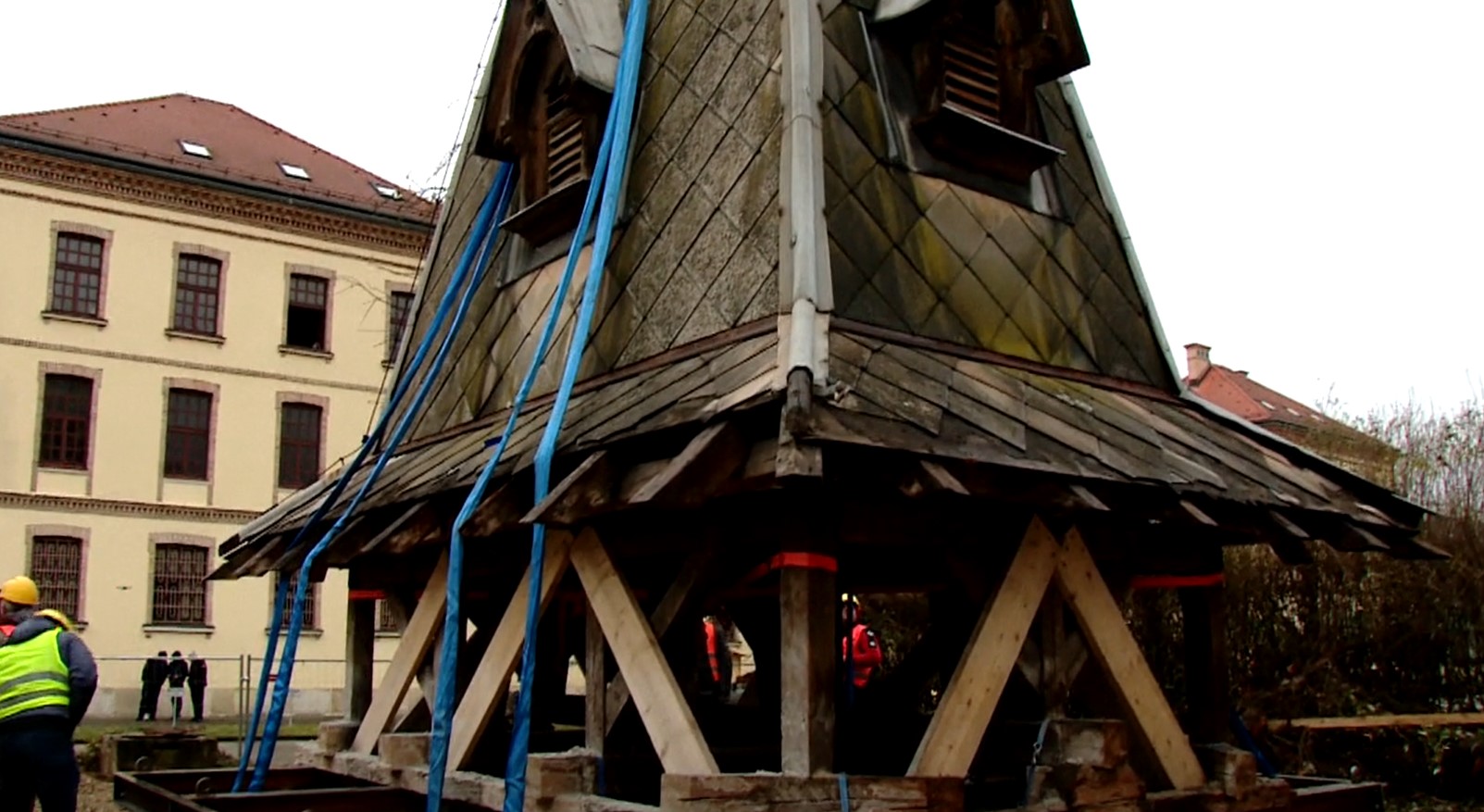 Uklonjen toranj sa zgrade Hrvatskog katoličkog sveučilišta: Zahtjevne pripreme trajale tjedan dana 26. veljače 2023.