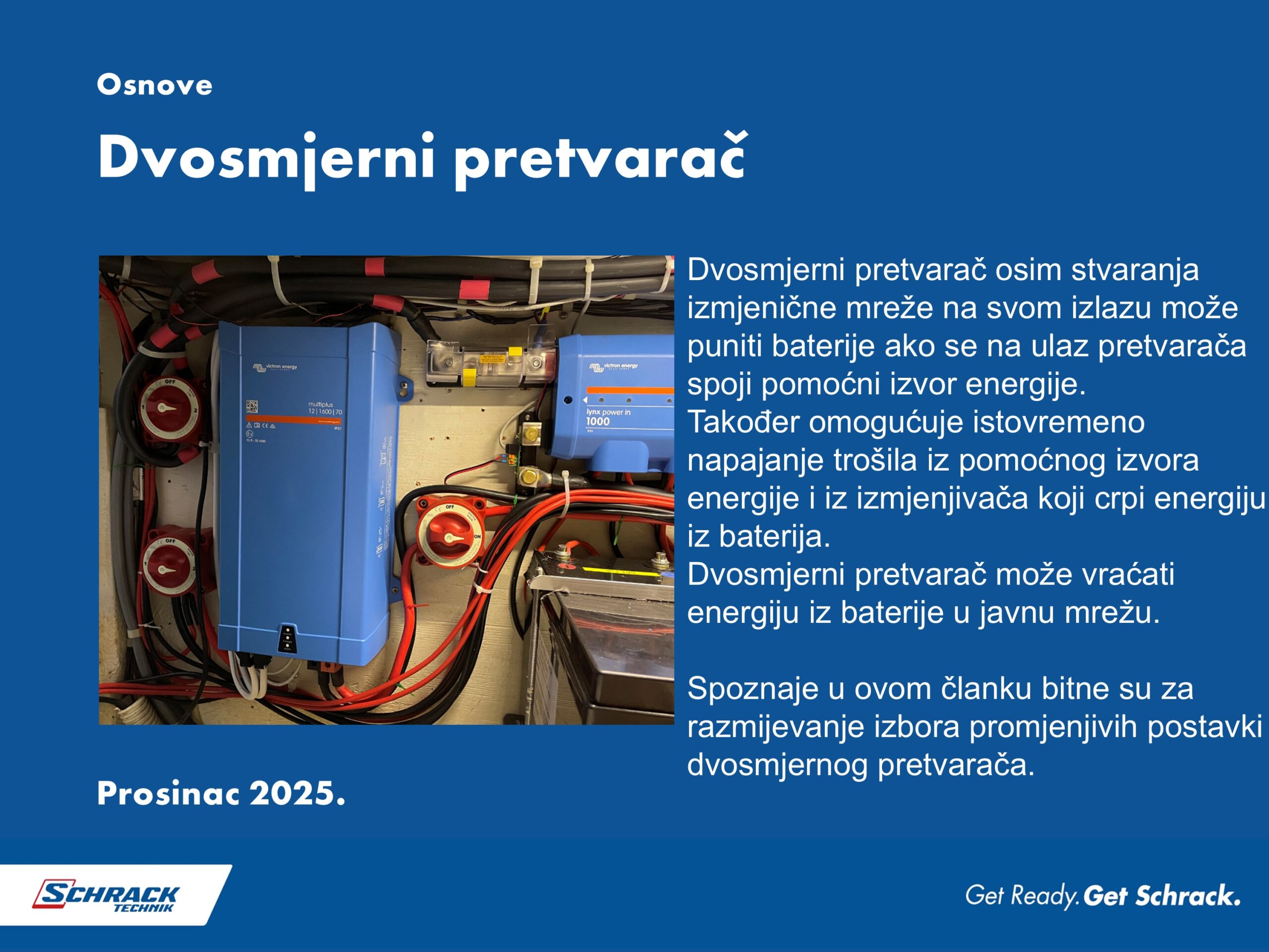 Osnovna elektro instalacija Šibenika 800 s LFP NG baterijama koju smo opisali izgleda možda jednostavno, no nestručnom instalacijom i primjenom ove komponente mogu ugroziti sigurnost korisnika instalacije i u nekom slučaju i izazvati požar! I ovaj puta ograničili samo se na prenošenje osnovne ideje rješenja. Ovaj članak nikako ne zamjenjuje originalne upute uz uređaje, kao ni činjenicu da je projektiranje i izvedbu električnih instalacija potrebno povjeriti ovlaštenim i osposobljenom projektantima i izvođačima! Oprez! To što nakon čitanja članka razumijete možda više nego prije, ne čini vas niti osposobljenim niti ovlaštenim, već samo možete kvalitetnije i sigurnije razgovarati s projektantom i/ili izvođačem vaše instalacije.