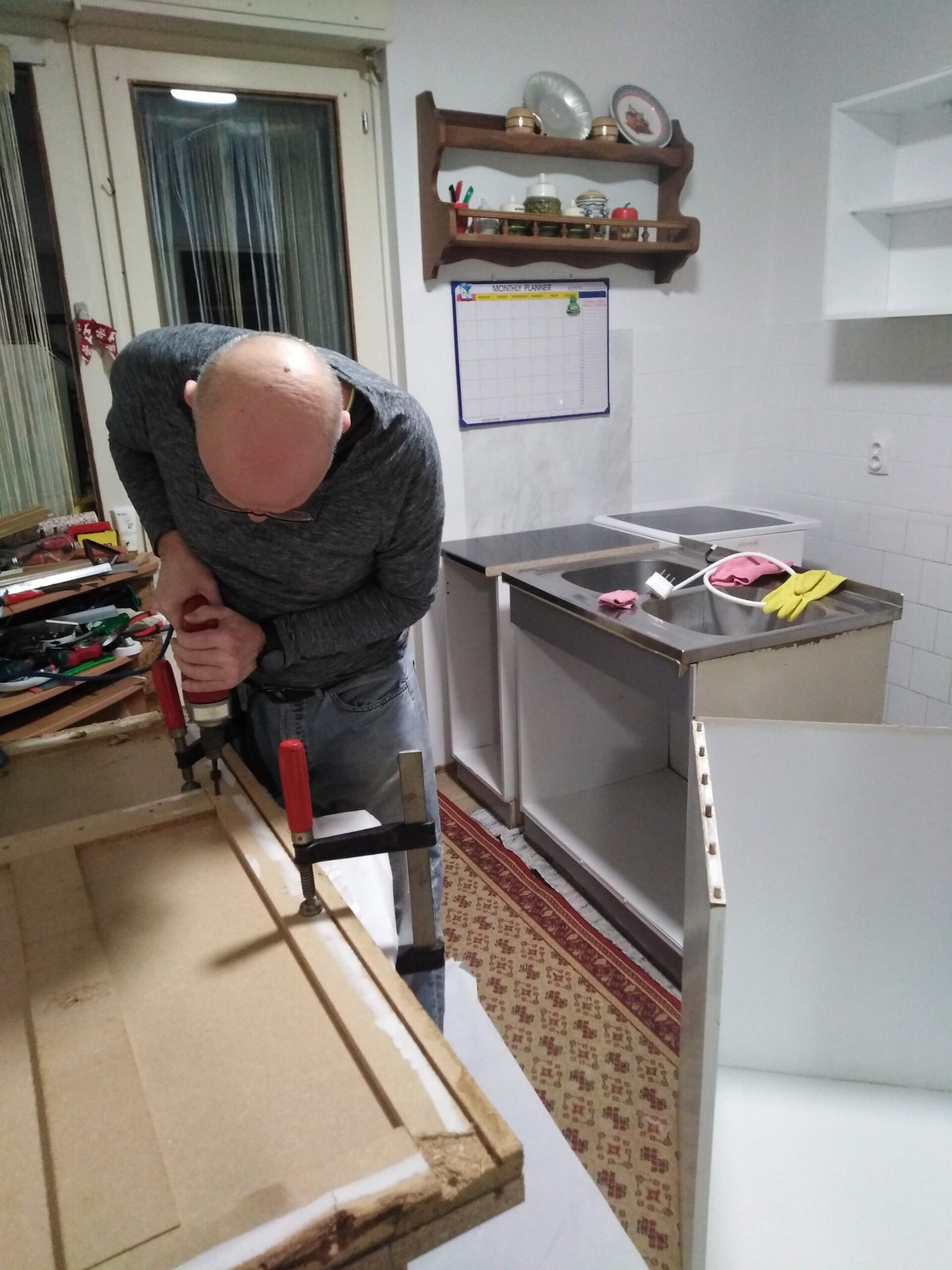 – Nakon montiranja radnih ploča na dva donja kuhinjska elementa uslijedilo je montiranje novih šarki i novih ručica na svih dvanaest vrata. 24 šarke x 2 šarafića plus dvanaest ručica x 2 šarafića za vrata i tri ručice x 2 šarafića za ladice. Dosta zamoran posao koji je trebalo odraditi s preciznošću i strpljenjem. Tu je supruga uskočila kao pomoć pa je i taj dio posla uspješno odrađen, prisjetio se Branislav.
