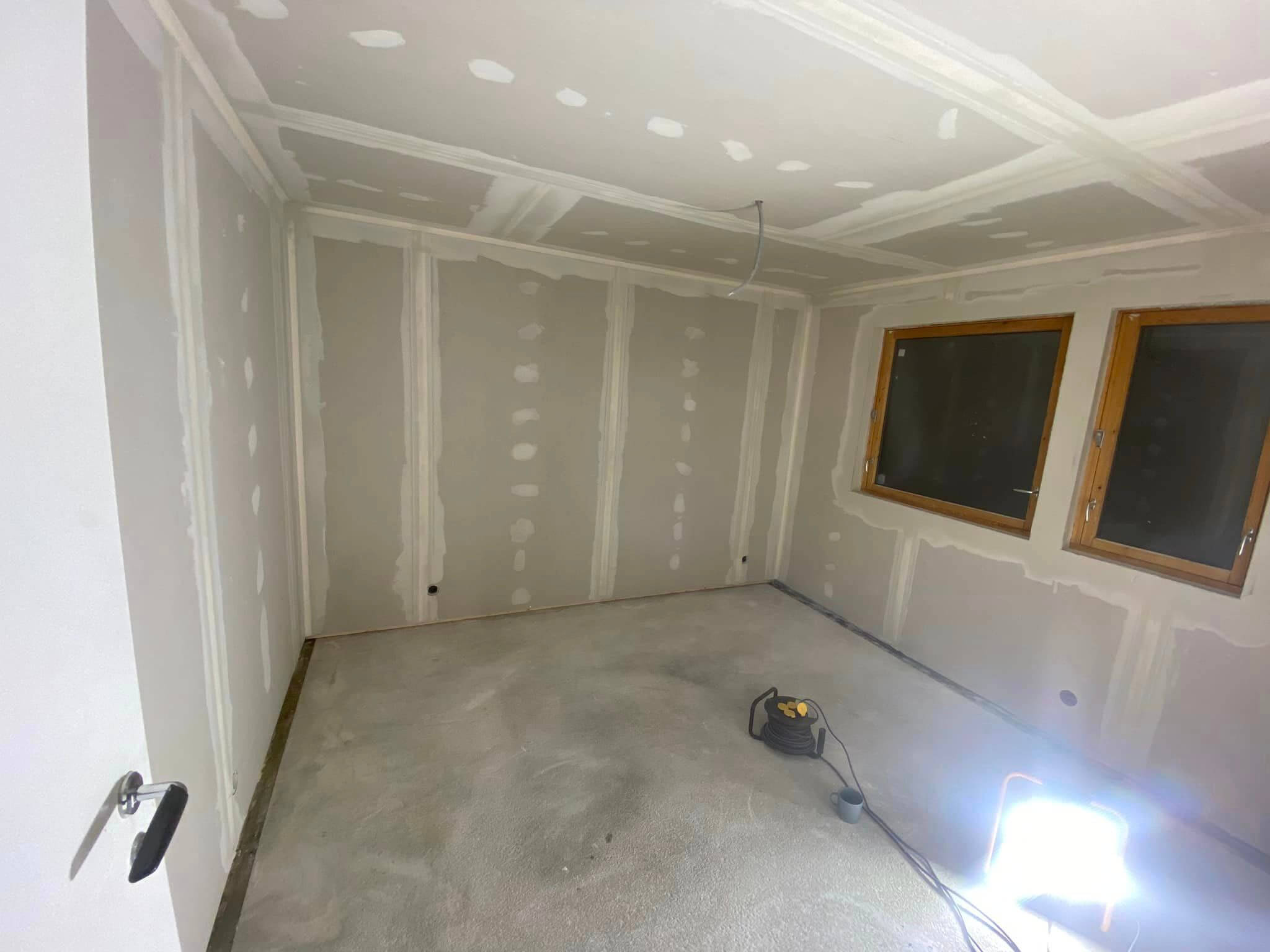 Kako nam je objasnio, u Norveškoj postoje rigorozna pravila koja se moraju poštovati kada su u pitanju građevinski radovi. Jedno od njih uključuje i to da radove na instalacijama, poput struje i vode, ipak mora raditi ovlaštena osoba. Zbog toga mu je kolega električar pomogao sa strujom. Nakon toga je postavio gips na sve zidove i na plafon, a nakon toga je postavio električno grijanje, u čemu je također pomogao električar.