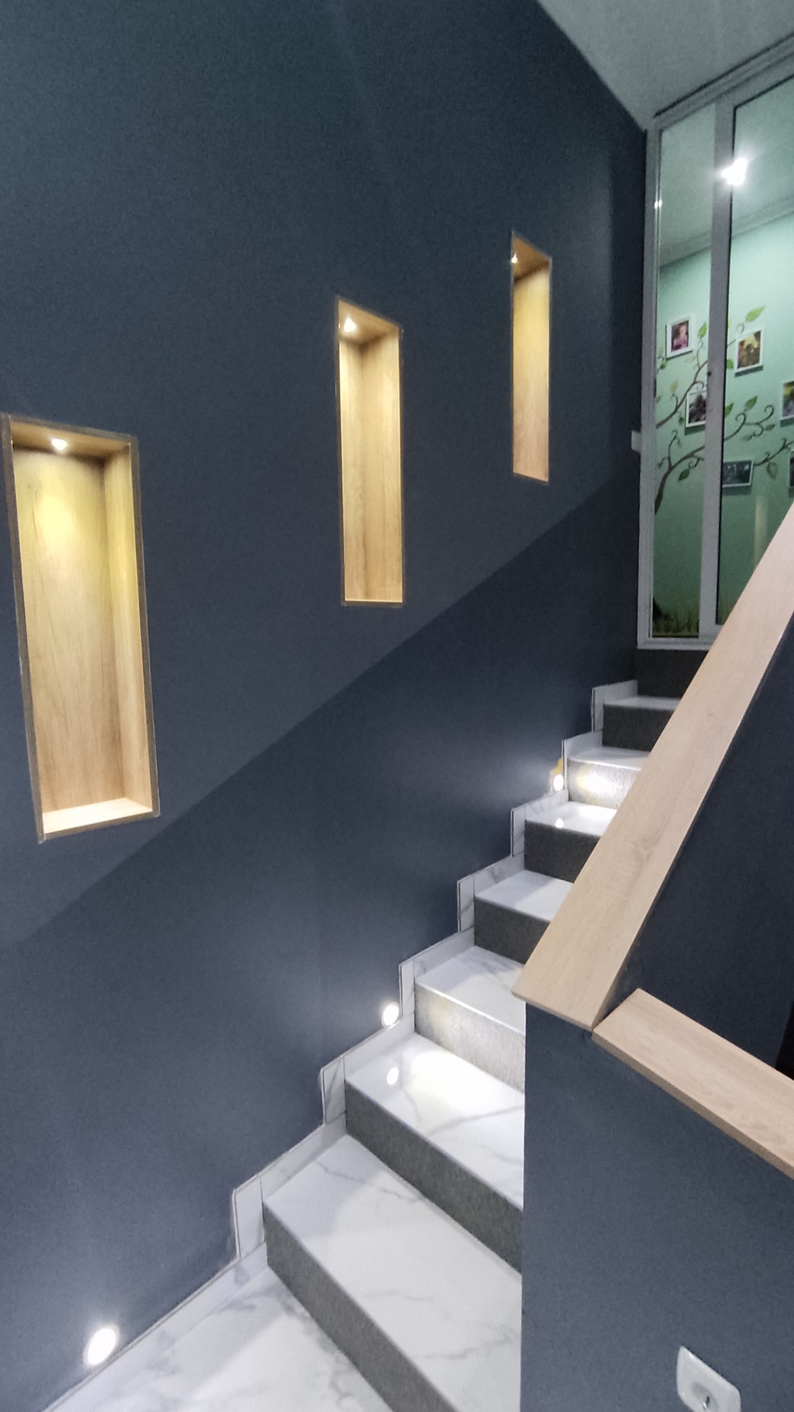 – Rukohvate na ogradi te ugradbene police i cijeli opšav oko staklene stijene sam dobro izmjerio i otišao u hobi-centar naručiti drvo i boju koja mi se svidjela. Sama montaža i nije bila toliko problematična. Pločice su veliki format, ja nemam alat za keramiku i tu je uletio kolega koji mi je sve izrezao na mjeru. Rasvjeta je sva led, čak nije ni skupa, rekao nam je Sabo.