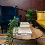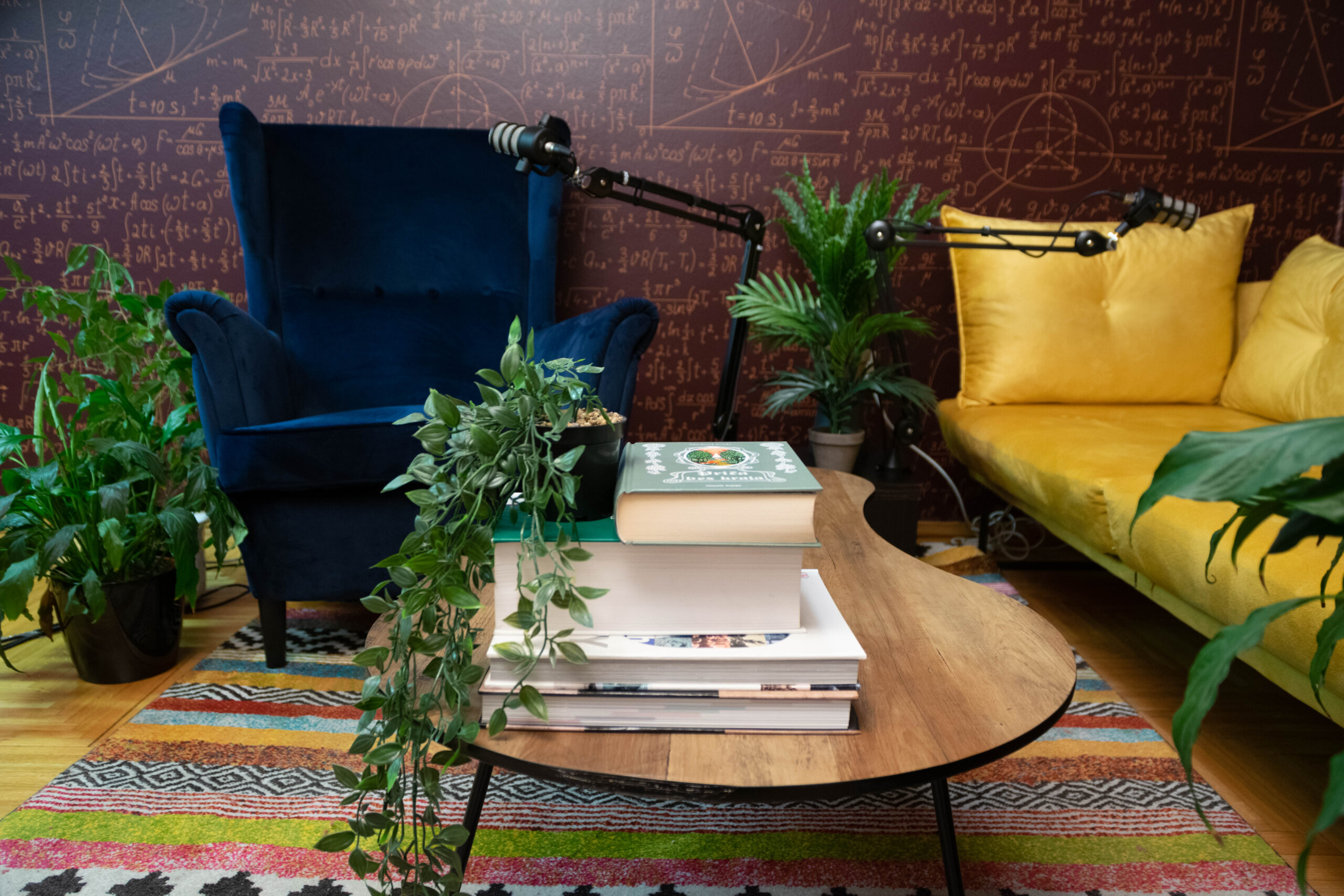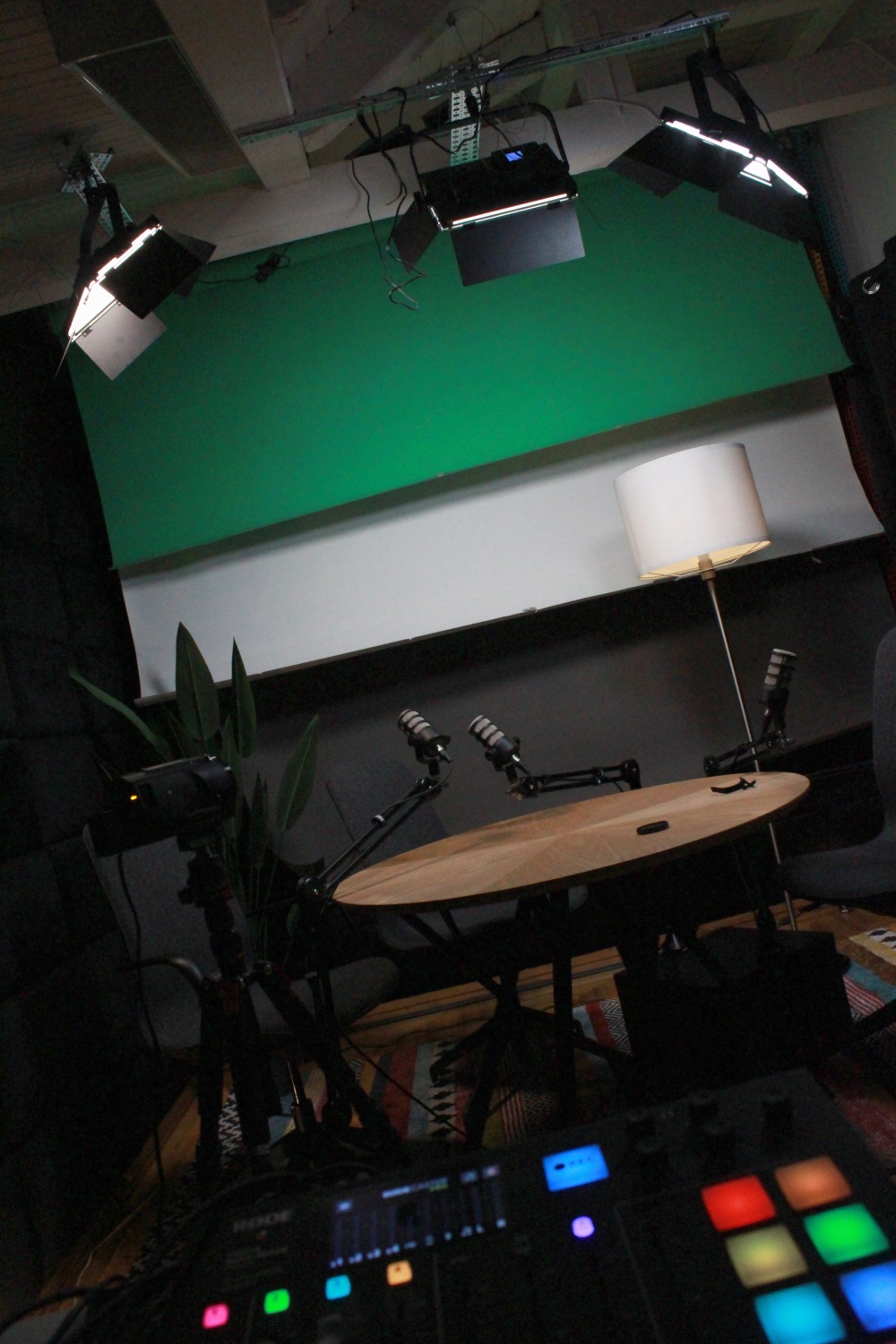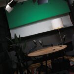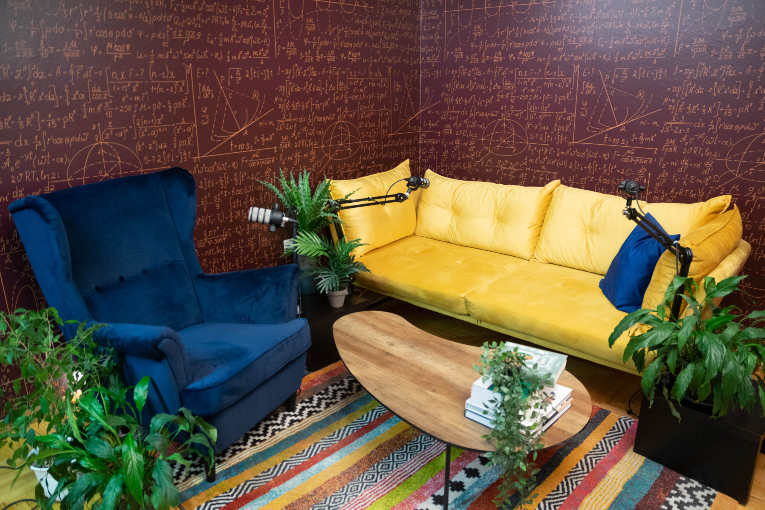Krenuli smo u potpunu renovaciju interijera studija – umjesto žutog kauča i plave fotelje, odlučili smo se za okrugli stol i stolice, a zidne tapete s matematičkim formulama odlučili smo zamijeniti crnim plišanim zidnim panelima. Osim toga, studio smo opremili i foto platnima u bijeloj, sivoj i zelenoj boji.